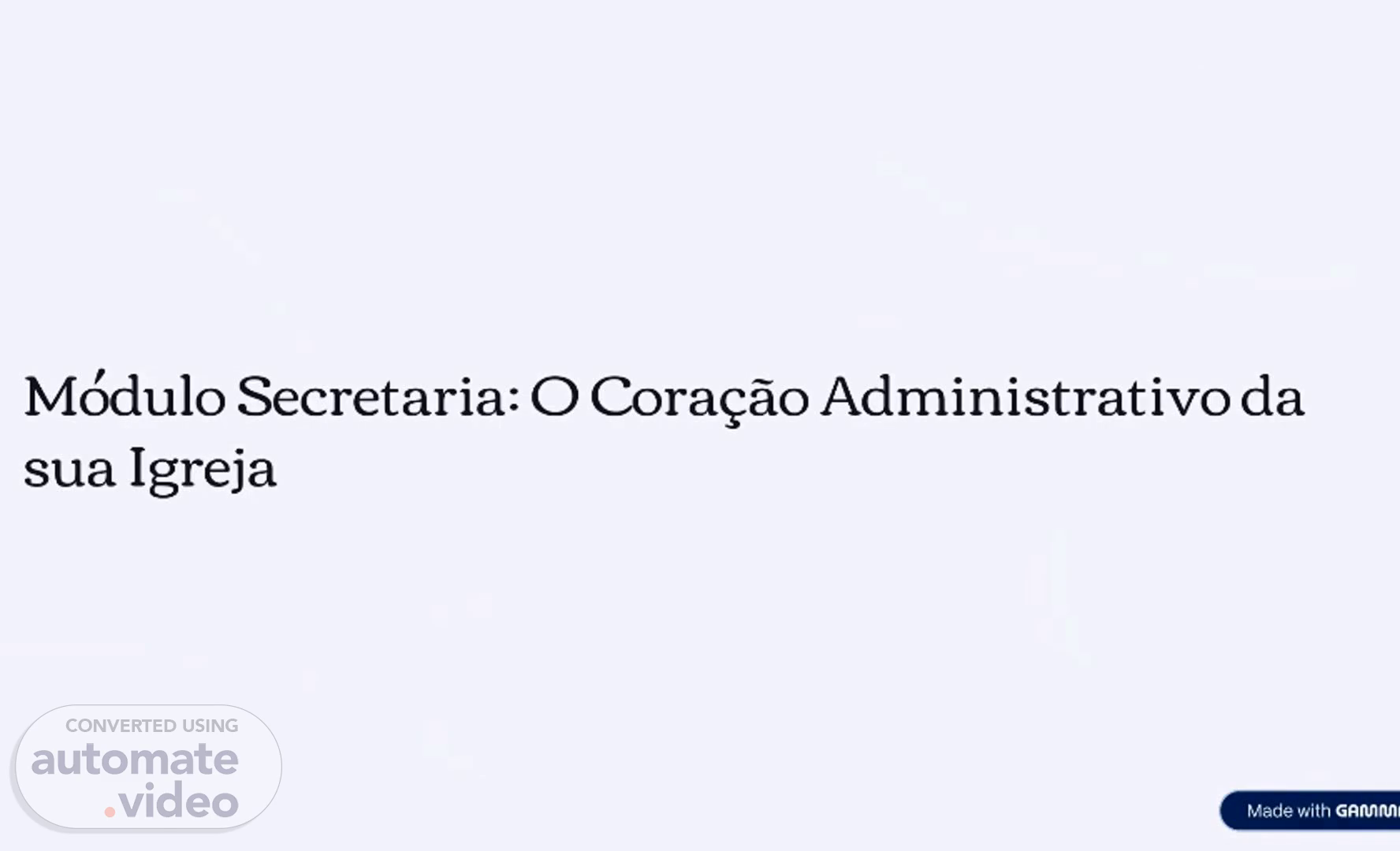 [Audio] Caro público, estamos na décima e última etapa da nossa apresentação do Módulo Secretaria: O Coração Administrativo da sua Igreja. Hoje, com orgulho, concluímos essa jornada e temos certeza de que você está pronto para assumir o controle da gestão dos membros da sua igreja com confiança e eficiência. Ao longo deste guia, você aprendeu e dominou os três pilares da gestão de membros: localização, adição e análise de qualquer pessoa em poucos segundos. Com essas habilidades, você será capaz de receber e registrar novos membros de forma precisa, além de ter acesso a perfis e históricos completos de cada membro. Essas habilidades são a base para uma secretaria organizada e um ministério fortalecido. O poder do IgrejasNet está em suas mãos. Continue explorando e descobrindo todo o potencial que essa ferramenta pode oferecer para a gestão da sua igreja. Com isso, chegamos ao final da nossa apresentação. Gostaríamos de agradecer a todos por sua atenção e interesse no Módulo Secretaria. Esperamos que essa apresentação tenha sido útil e que possamos continuar trabalhando juntos para o crescimento da sua igreja. Obrigado!.