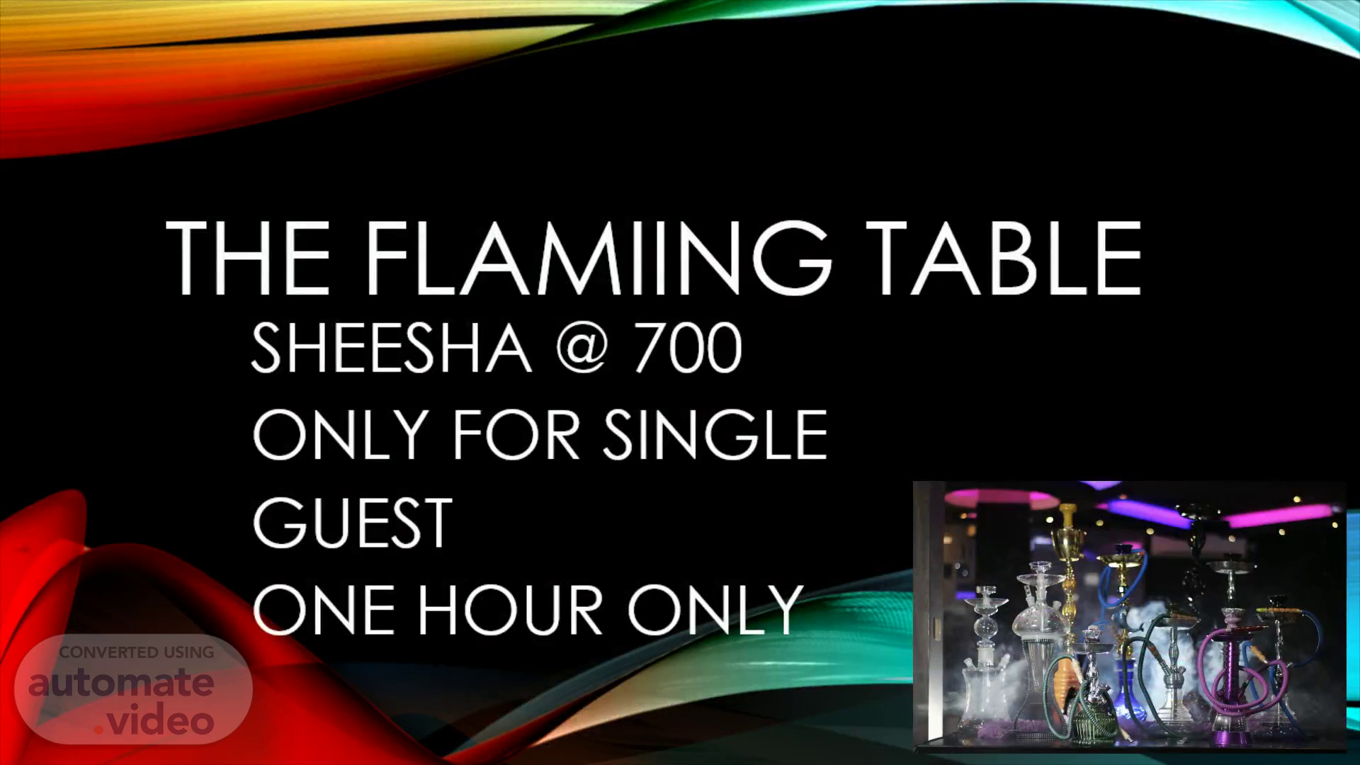 The flamIing table. SHEESHA @ 700 ONLY FOR SINGLE GUEST ONE HOUR ONLY.