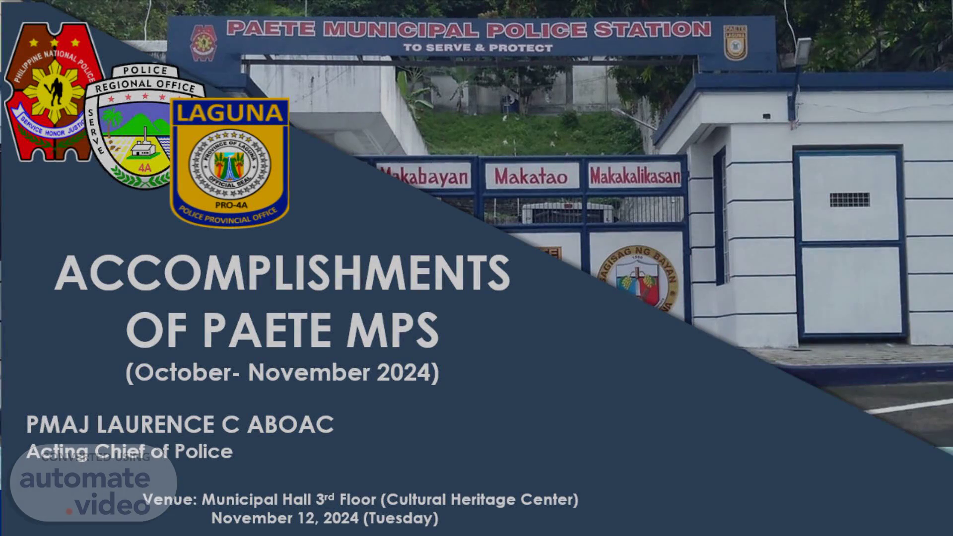 [Audio] GREETINGS! Here are the ACCOMPLISHMENTS OF PAETE MPS Covering the period of October to November 2024.