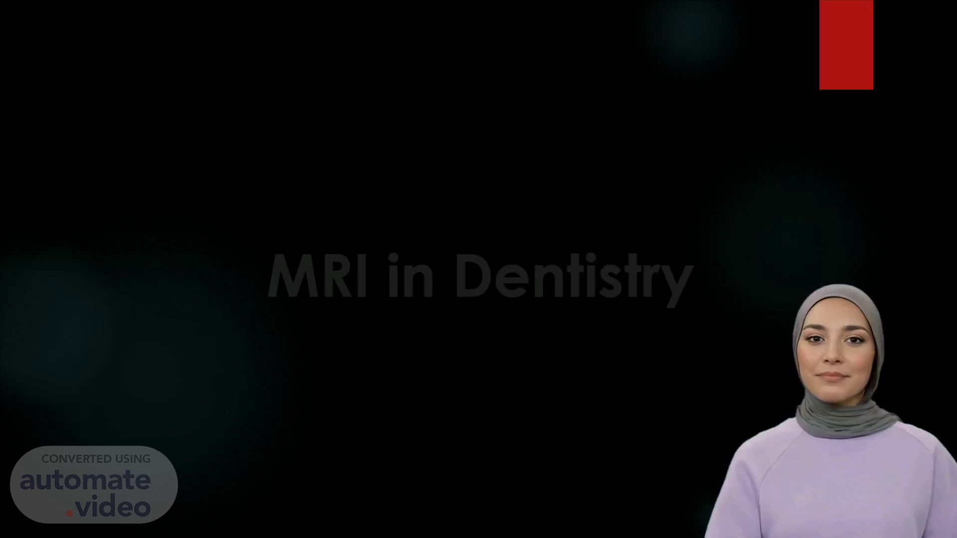 [Virtual Presenter] Good morning everyone. Today we'll be discussing the benefits of utilizing Magnetic Resonance Imaging (MRI) in the field of dentistry. We'll look at how this technology can be used to produce accurate images to diagnose and treat various conditions. We will also discuss the safety and efficacy of this imaging technique. So let's get started..