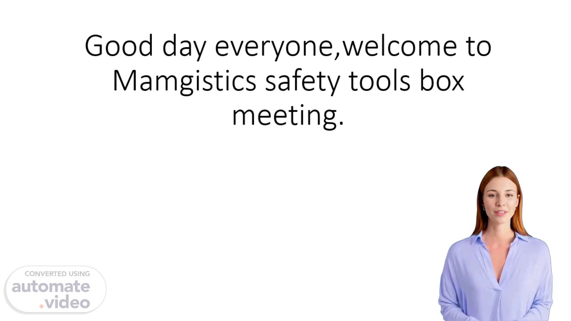 [Virtual Presenter] Good day everyone,welcome to Mamgistics safety tools box meeting..