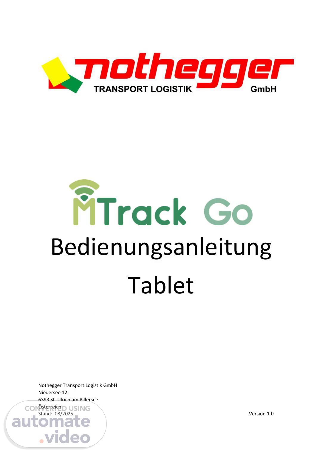 [Audio] Bedienungsanleitung Tablet Nothegger Transport Logistik GmbH Niedersee 12 6393 St. Ulrich am Pillersee Österreich Stand: 08/2025 Version 1.0.