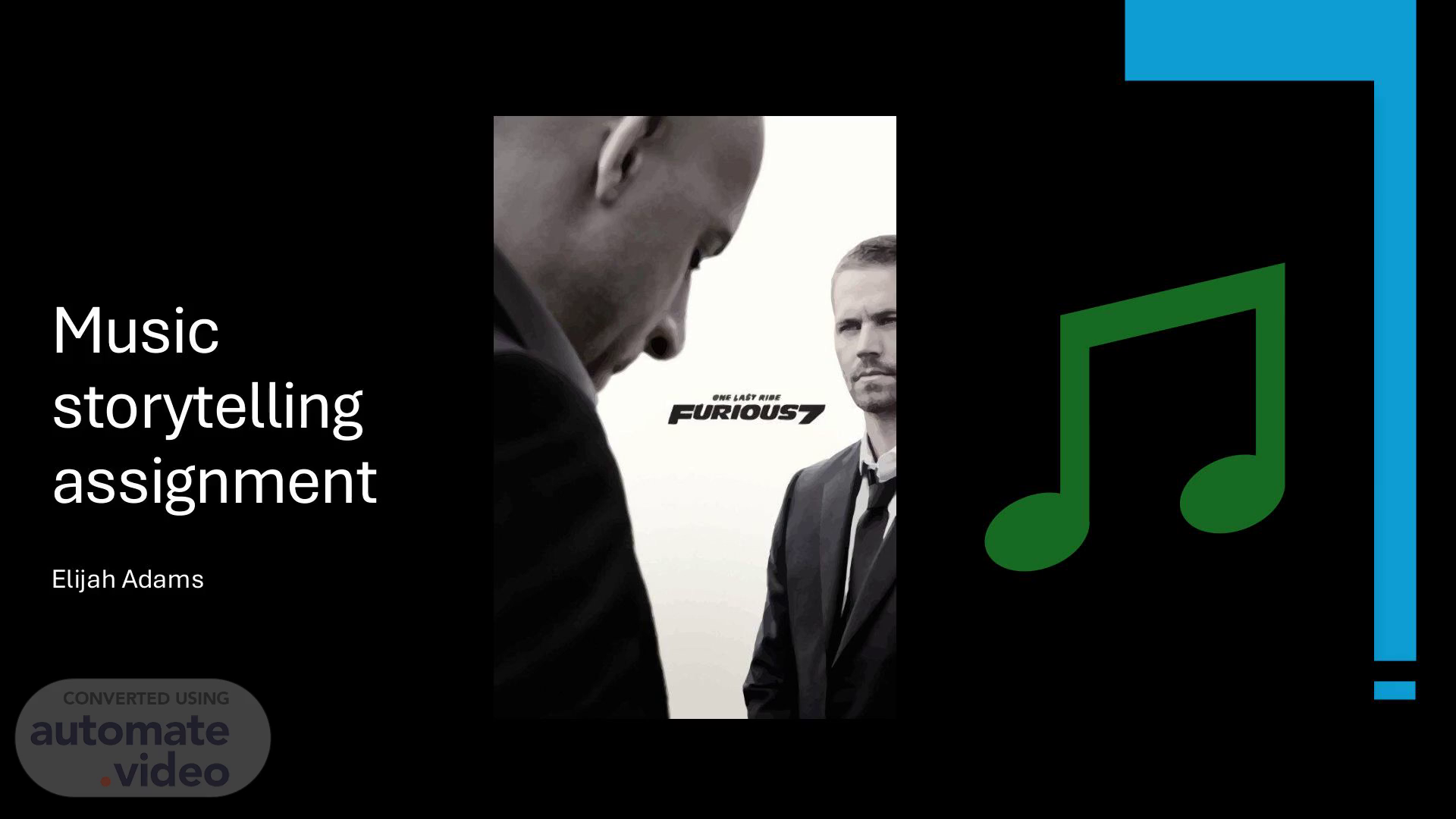 [Audio] Part 3: Context and summary Title: Fast & Furious 7 (2015) Scene: Brian and Dom's Final Ride Composer/Song: "See You Again" by Wiz Khalifa ft. Charlie Puth Director: James Wan Summary: In this scene, music is not just background it becomes the emotional heart of the story. ThePhoto by PhotoAuthor is licensed under CCYYSA. The use of melody, harmony, dynamics, and rhythm work together to reflect loss, love, and memory. It transforms a high-speed action film into a heartfelt tribute, reminding audiences that family, both on and off screen, lasts forever. ThePhoto by PhotoAuthor is licensed under CCYYSA..