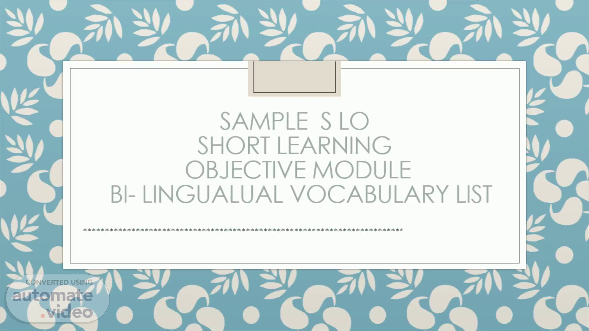Sample s lo short learning objective module bi- lingualual vocabulary list.
