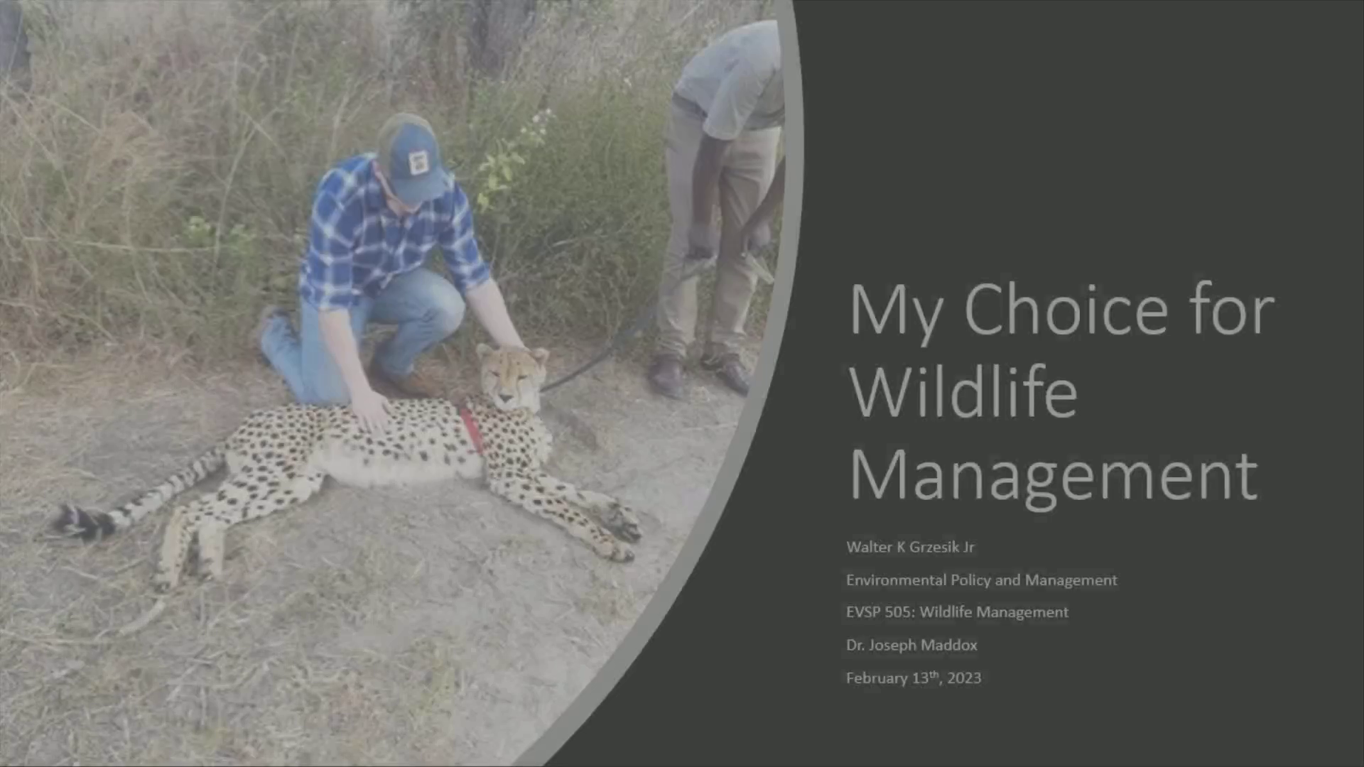 [Audio] Hello everyone, I am Walter Grezsik, and this is my reasoning for taking wildlife management..