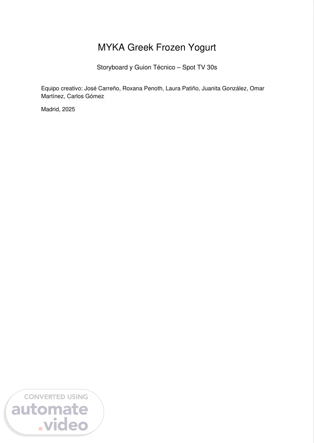 [Audio] MYKA Greek Frozen Yogurt Storyboard y Guion Técnico – Spot TV 30s Equipo creativo: José Carreño, Roxana Penoth, Laura Patiño, Juanita González, Omar Martínez, Carlos Gómez Madrid, 2025.