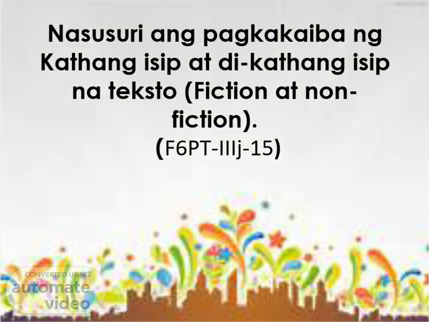 Nasusuri ang pagkakaiba ng Kathang isip at di-kathang isip na teksto (Fiction at non-fiction). ( F6PT-IIIj-15 ).