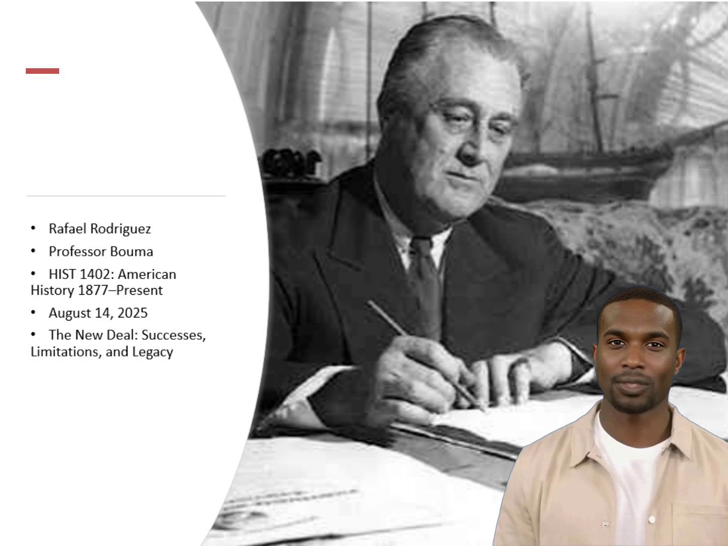 [Virtual Presenter] This presentation is about the New Deal. In this training video, we will discuss the successes, limitations, and legacy of this important time in American history. So, let's get started and find out more about the impact and long-term results of the New Deal. Let's begin..