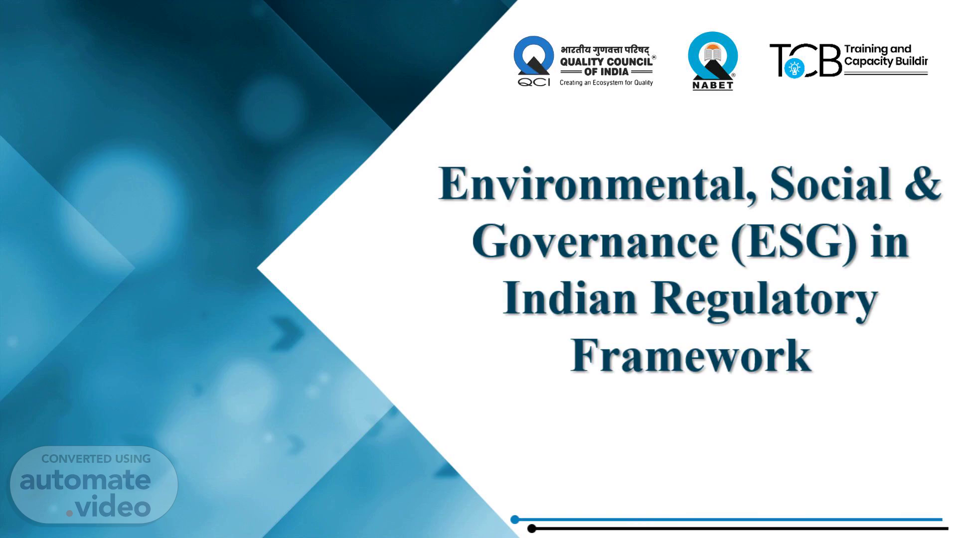 Quality Infrastructure. Environmental, Social & Governance (ESG) in Indian Regulatory Framework.