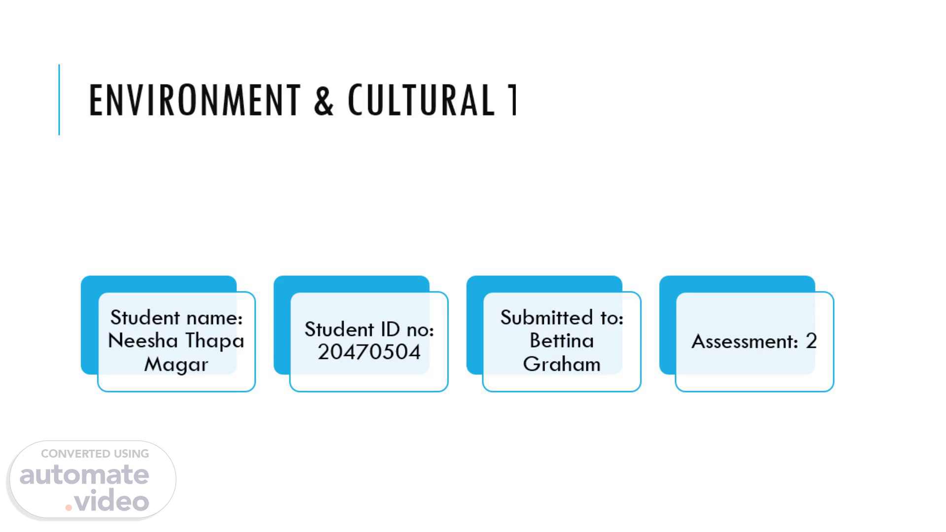 Environment & Cultural Tourism. Student name: Neesha Thapa Magar Student ID no: 20470504 Submitted to: Bettina Graham Assessment: 2.