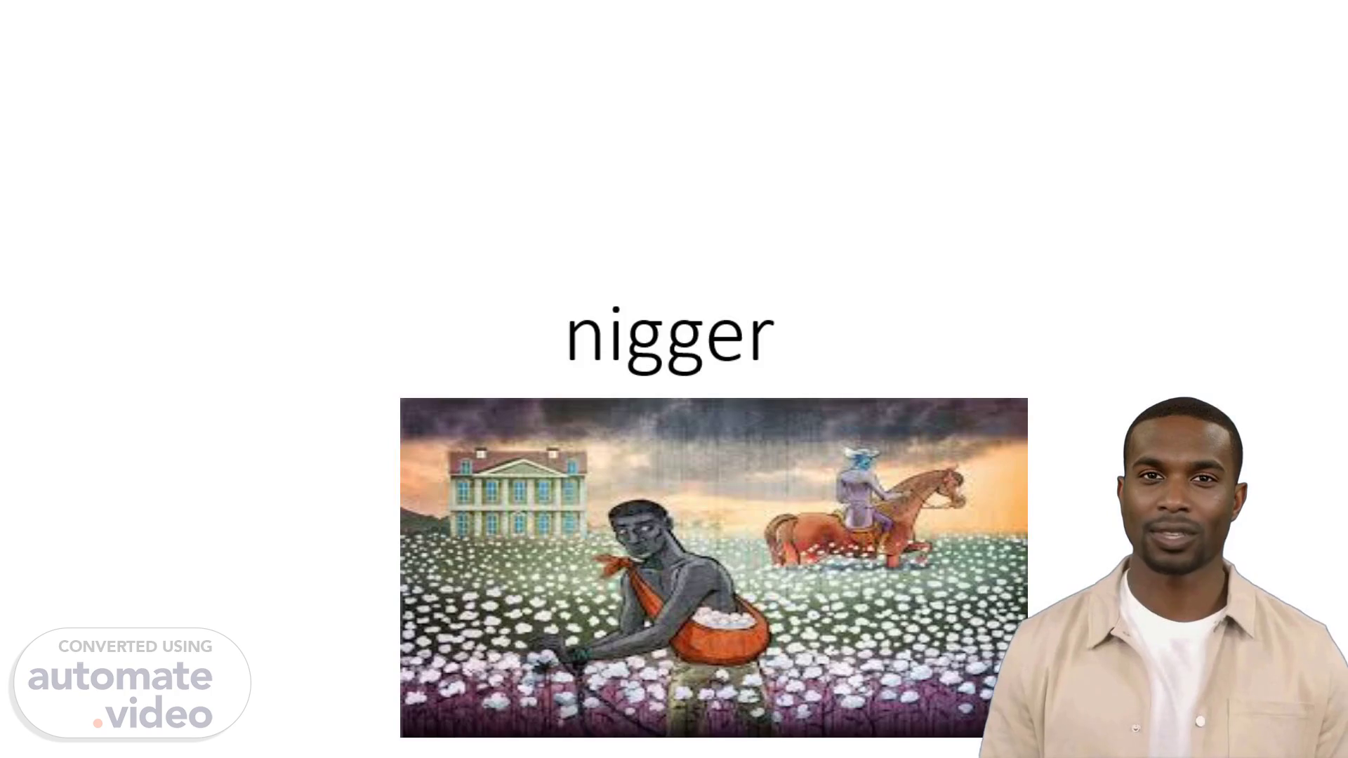 [Virtual Presenter] nigger A nigger is what slaves used to be called back in the good old days.
