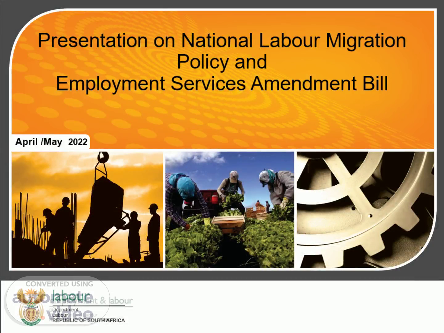 Presentation outline. 1. Road Map 2. Vision 3. Rationale for the NLMP 4. Migration context 5. Guiding principles 6. Four Key Intervention Areas 6 .1 . Labour migration governance and management 6 .2 . Data for NLMP monitoring and evaluation 6 .3 . Labour migration to South Africa 6 .4 . Labour migration.