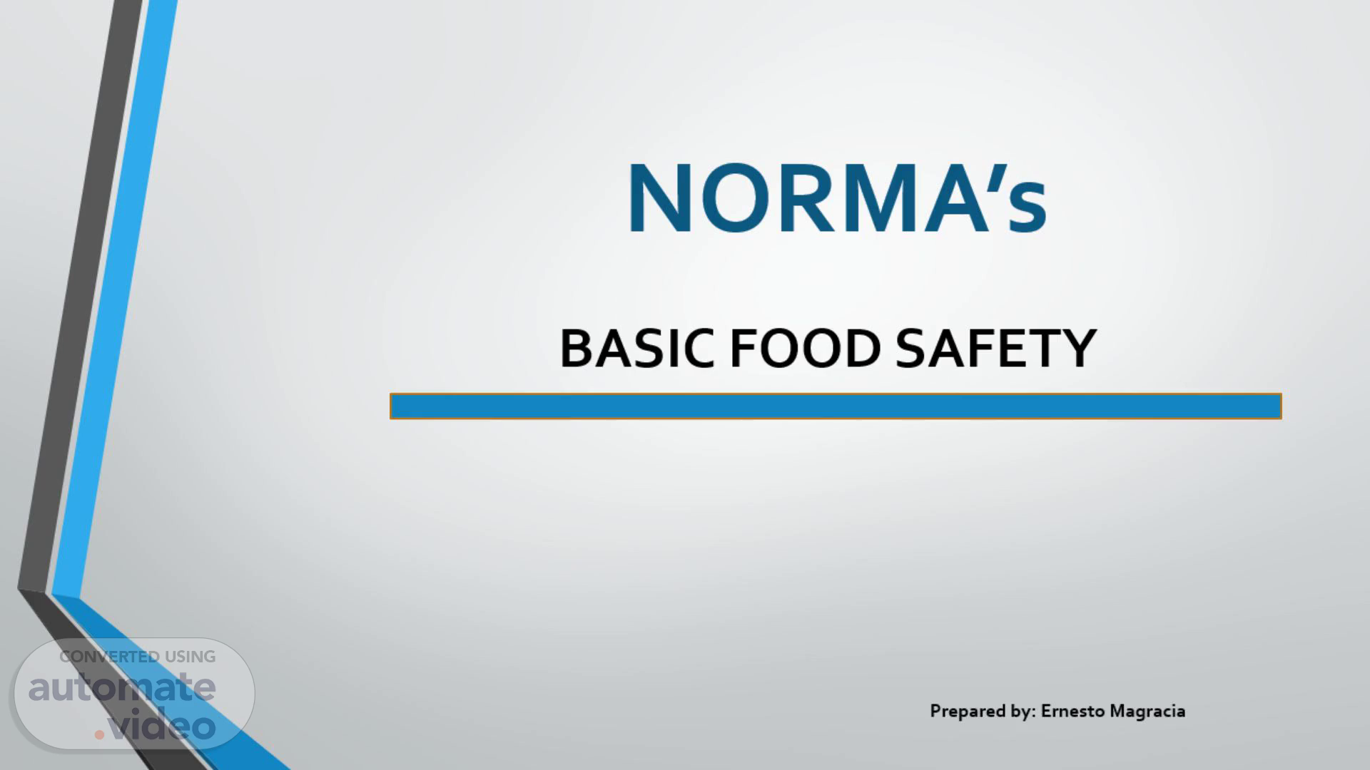 [Virtual Presenter] Welcome to Normas Basic Food Safety Training Program,Today we will having a quick review and few knowledge about food safety. And introduce to everyone how important to our daily task in the kitchen and also to our daily life. Prepared By: Chef Ernest Magracia.