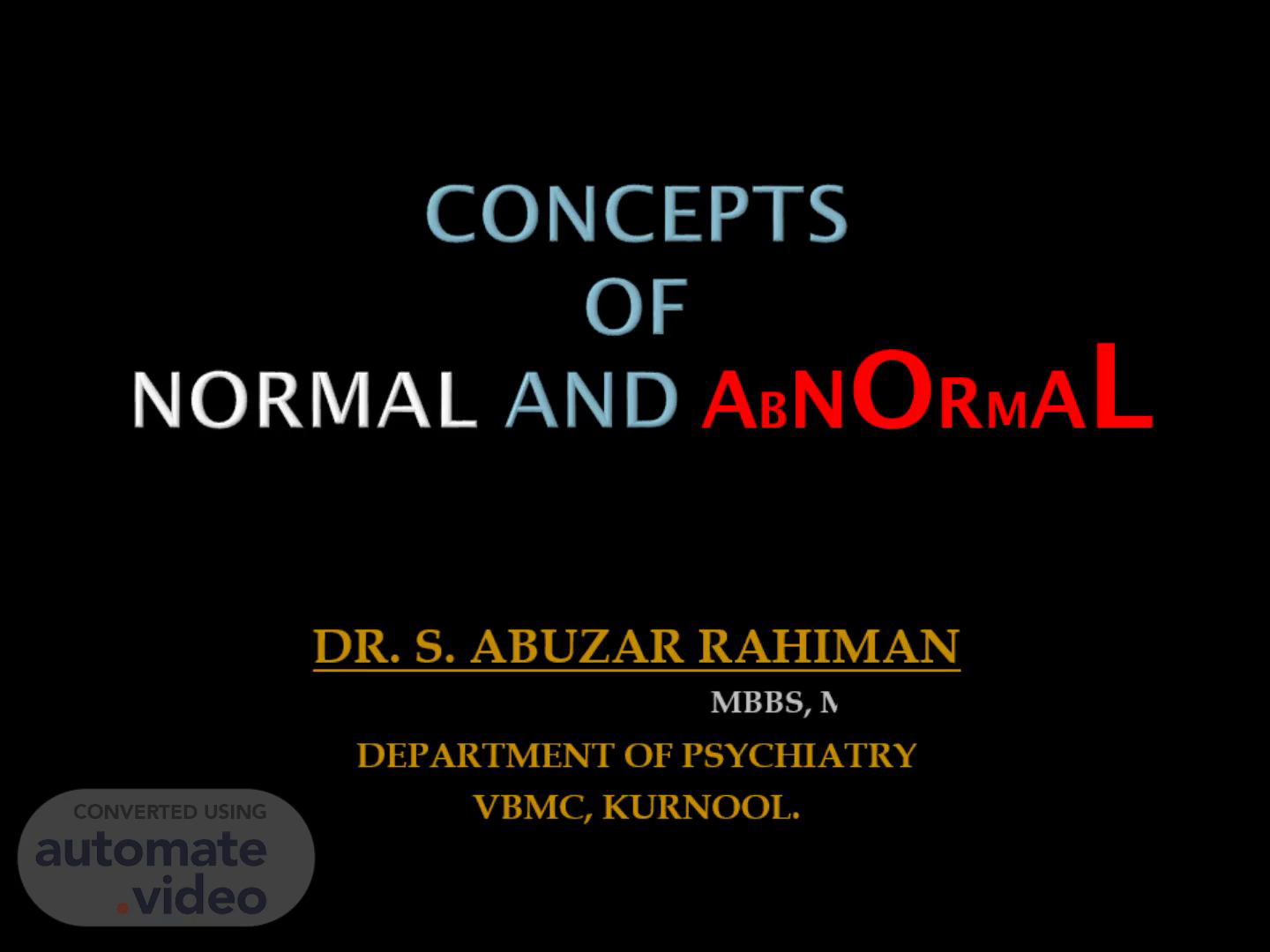 Concepts of Normal and. DR. S. ABUZAR RAHIMAN DEPARTMENT OF PSYCHIATRY VBMC, KURNOOL..