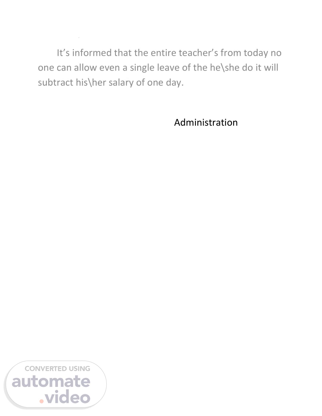[Audio] Superior School And College Shahdadpur It's informed that the entire teacher's from today no one can allow even a single leave of the he\she do it will subtract his\her salary of one day. Administration Superior School And College Shahdadpur.