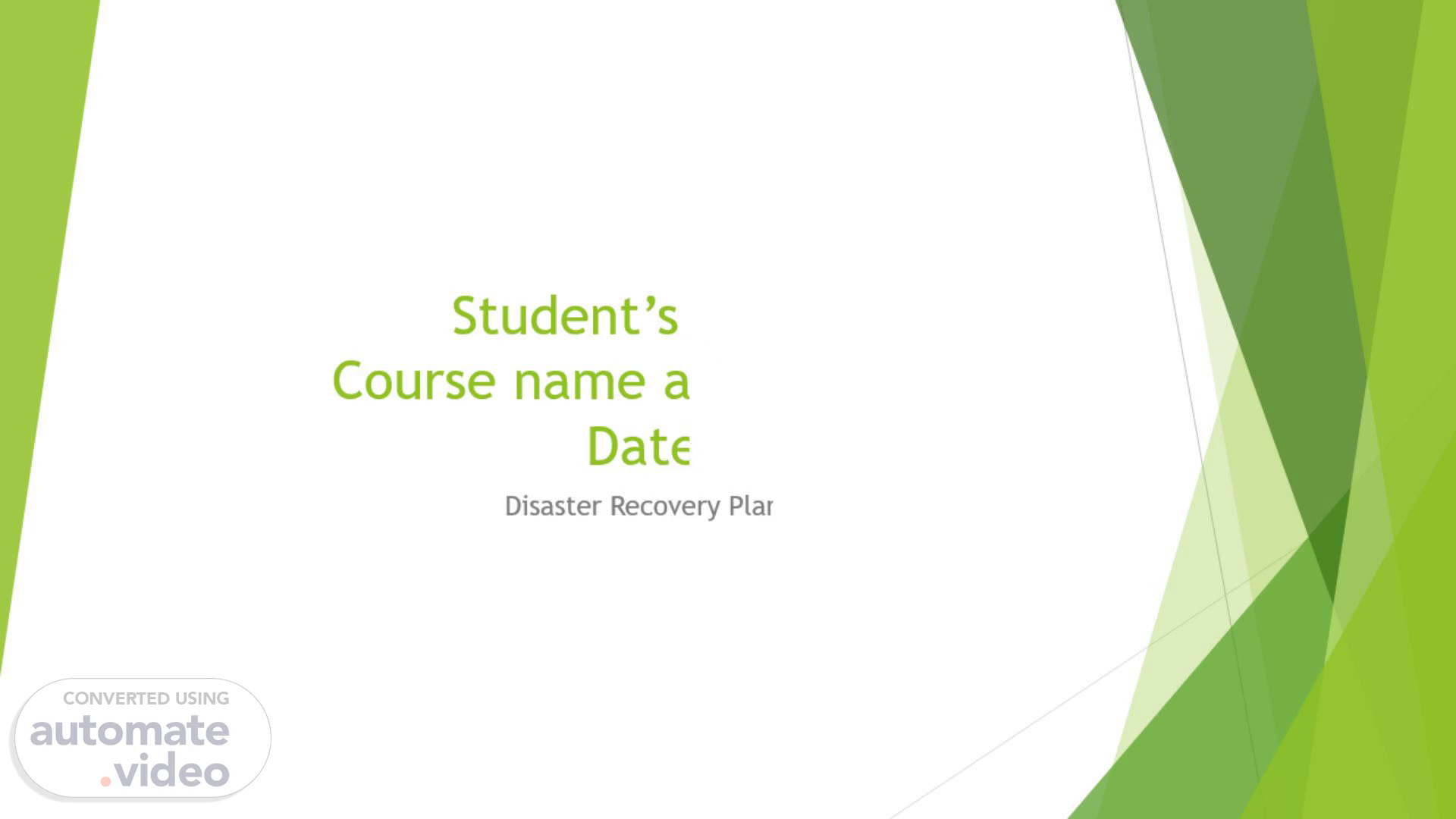 Student’s Name Course name and number Date. Disaster Recovery Plan.