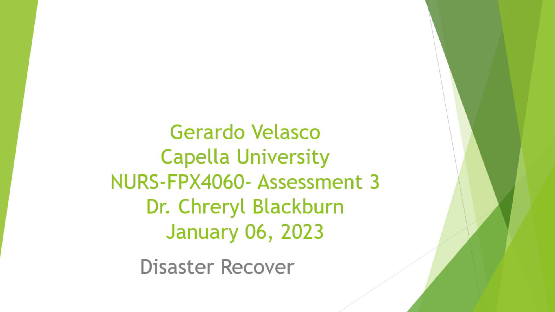 Gerardo Velasco Capella University NURS-FPX4060- Assessment 3 Dr. Chreryl Blackburn January 06, 2023.