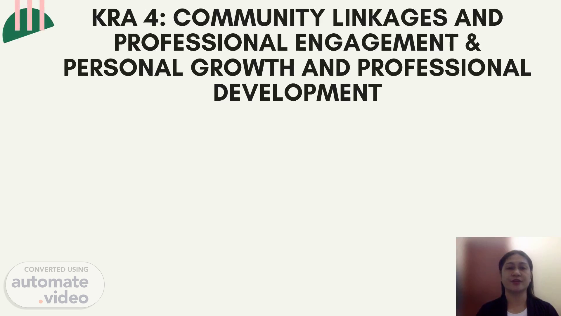 KRA 4: COMMUNITY LINKAGES AND PROFESSIONAL ENGAGEMENT & PERSONAL GROWTH AND PROFESSIONAL DEVELOPMENT.