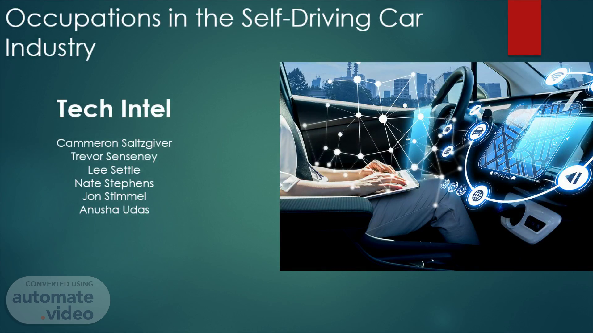 [Audio] Good Morning, Afternoon, Evening Class and Professor, we will presenting Tech Intel's brief on Self-driving cars. Tech Intel comprises of Cammeron Saltzgiver, Trevor Senseney, Lee Settle, Nate Stephens, Jon Stimmel, and Anusha Udas..