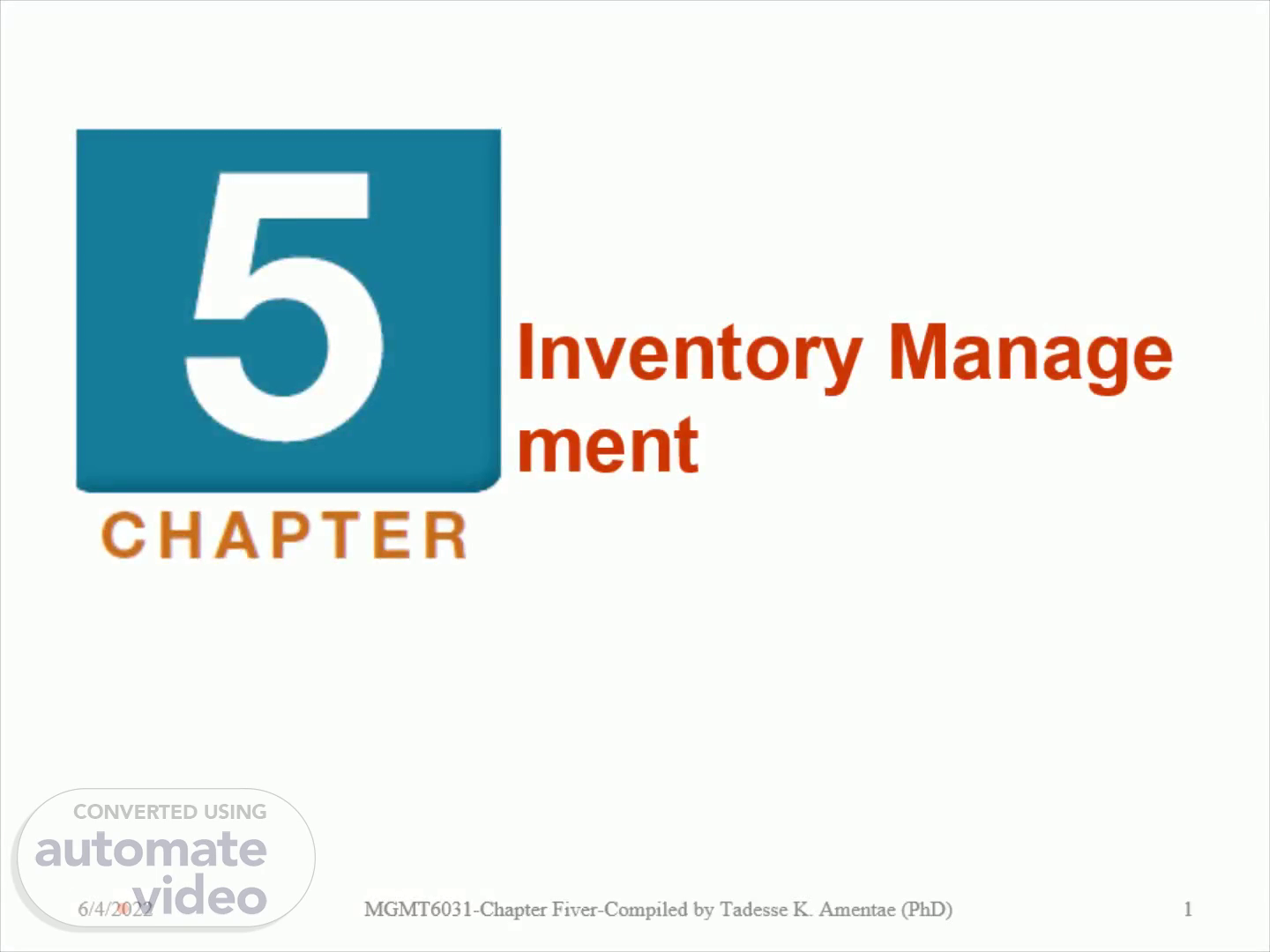 6/1/2022. MGMT6031-Chapter Fiver-Compiled by Tadesse K. Amentae (PhD).