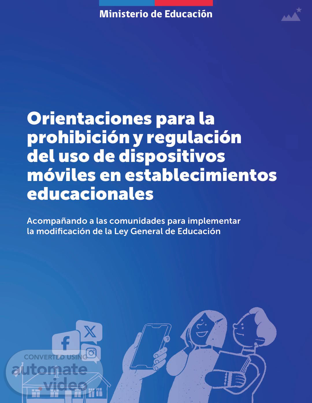Ministerio de Educación Orientaciones para la prohibición y regulación del uso de dispositivos móviles en establecimientos educacionales Acompañando a las comunidades para implementar la modificación de la Ley General de Educación.