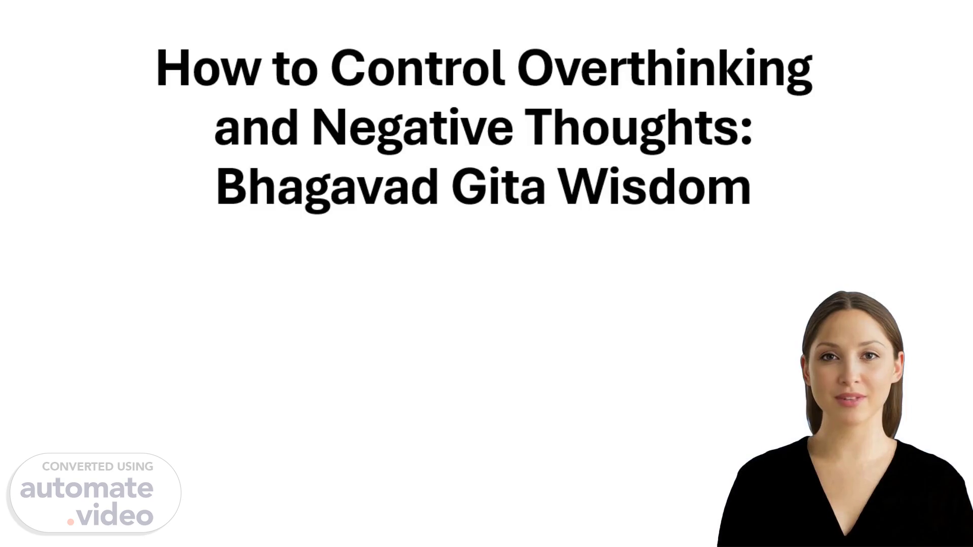 [Virtual Presenter] Welcome to our training video about using the wisdom of the Bhagavad Gita to control overthinking and negative thoughts. As a teacher in Other, I am eager to share valuable insights and techniques that can assist you in breaking the pattern of overthinking and negative thoughts. Let's begin this journey towards a calmer and more balanced state of mind. This is the initial slide of our presentation, so let's start and discover the teachings of the Bhagavad Gita.".