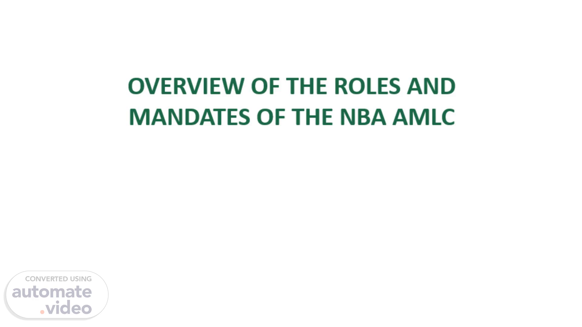 OVERVIEW OF THE ROLES AND MANDATES OF THE NBA AMLC.