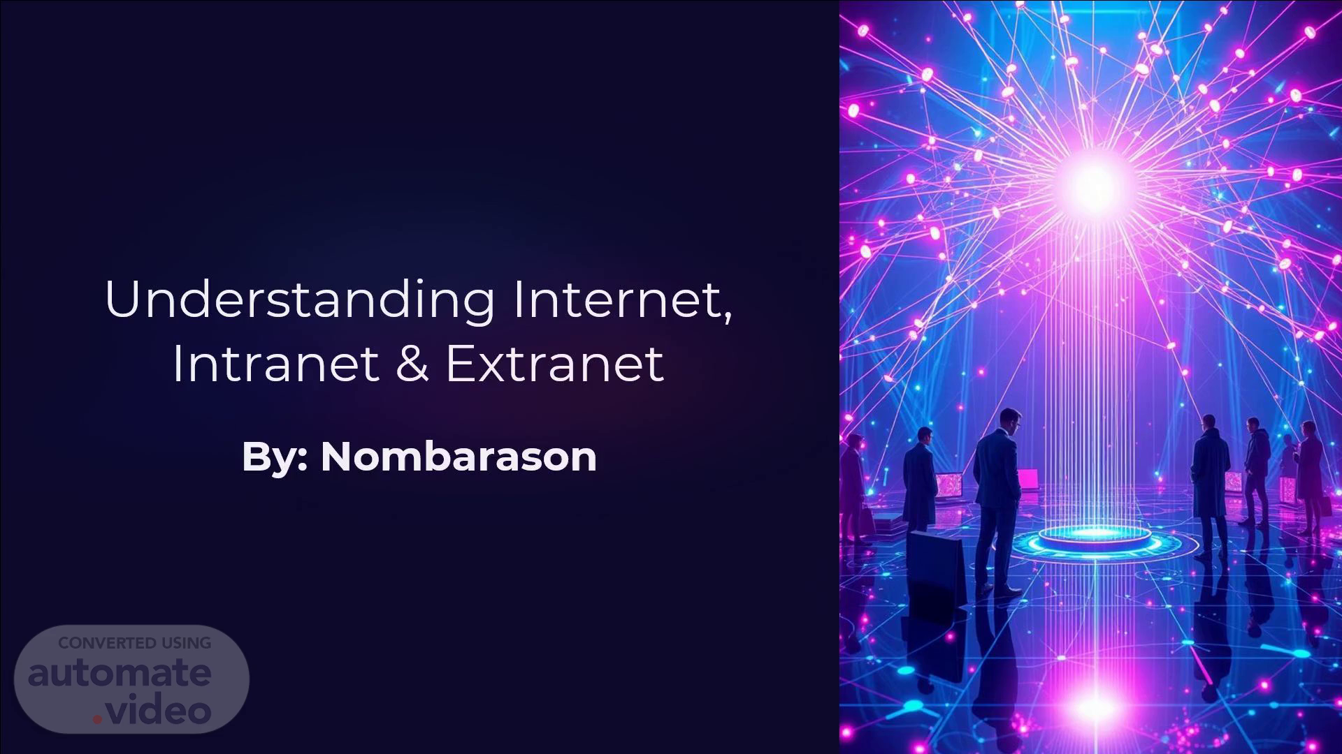 [Audio] Welcome, everyone, to our presentation on the power of Internet, Intranet, and Extranet. Throughout this session, we will delve into the advantages and influence of these robust networks on communication, information, business, entertainment, and education. Please join us as we explore the world of connectivity and uncover how it can improve both our personal and professional lives. Let's begin!.