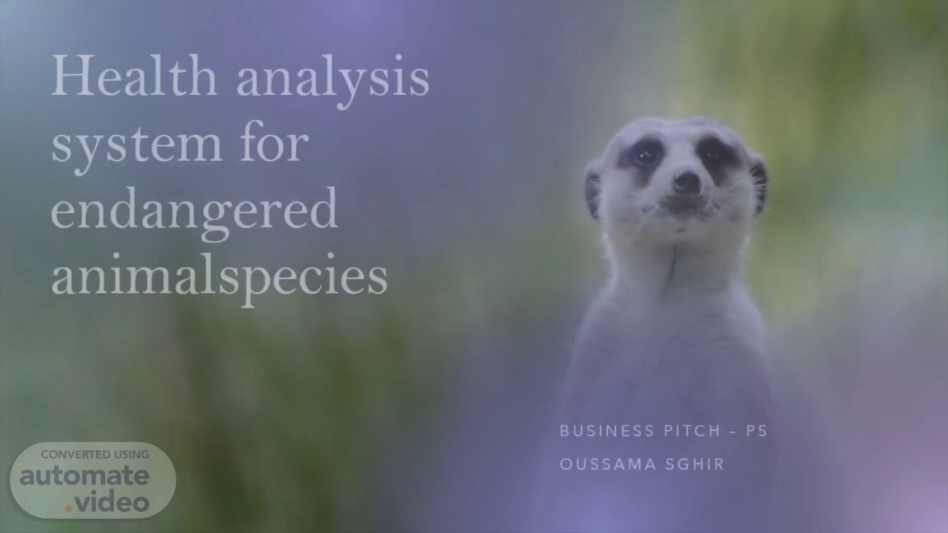 [Audio] The project being presented in this PowerPoint is a proposal for an IoE device that focuses on Health system of endagered animal species. I'll go over a lot of the system's components, including the proposal, the demographic being targeted, effectiveness, designs, and more..