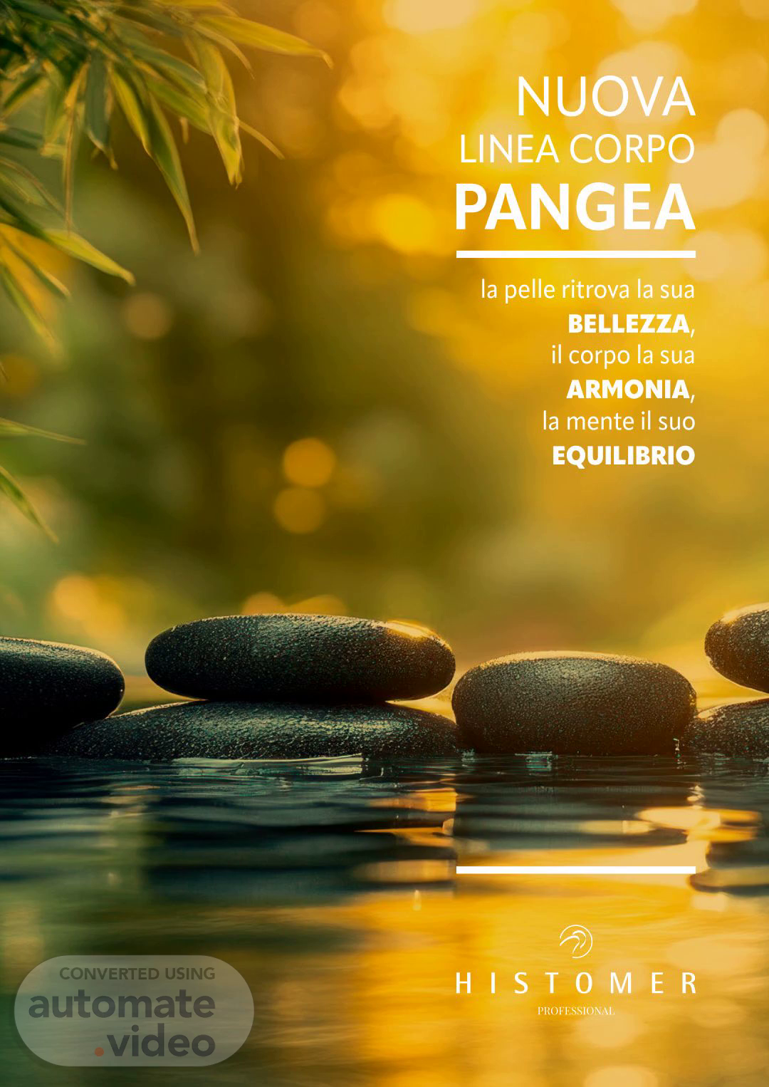 PANGEA | ENERGIA PRIMORDIALE. RINASCITA DEL CORPO E DELLA MENTE PANGEA è la nuova linea corpo Histomer Professional ispirata all’energia originaria della Terra, quando tutto era unito, puro, essenziale. Unisce la forza degli elementi primordiali: acque termali vulcaniche, minerali attivi, pietre e legni, con le più avanzate scoperte della biotecnologia cosmetica moderna. Il risultato è un percorso unico di rinnovamento, riequilibrio e benessere che rigenera la pelle e armonizza corpo e mente. PANGEA nasce per elevare i rituali benessere oltre gli standard comuni, fondendo scienza e natura. Non solo trattamenti SPA, ma una vera risposta alle esigenze della pelle: elasticità, compattezza, smagliature e armonia del corpo. Pensata per SPA e centri benessere che vogliono distinguersi, ma anche la scelta ideale per estetiste moderne che desiderano offrire esperienze esclusive e risultati visibili. “Acqua termale, minerali vulcanici, legno, sabbia vulcanica e microalghe primordiali per rigenerare la pelle e ristabilire l’equilibrio interiore.” DUE ANIME PANGEA Insieme, RITUAL e REPAIR offrono protocolli versatili e personalizzabili, dove benessere ed efficacia si incontrano in perfetta armonia INTRODUZIONE PANGEA REPAIR L’anima performante: attivi biotech di ultima generazione che agiscono in profondità per migliorare tono, elasticità e densità cutanea, contrastando lassità, smagliature e segni del tempo. Trattamenti mirati ad alta performance per la struttura cutanea • Migliora elasticità e compattezza della pelle • Riduce lassità, cedimenti e smagliature • Sostiene i processi di autoriparazione cutanea • Favorisce il turnover cellulare e il rinnovamento cutaneo • Contrasta i segni dell’invecchiamento • Indicato in fasi delicate: post-dieta, gravidanza, cambiamenti ormonali PANGEA RITUAL L’anima sensoriale: texture avvolgenti, fragranze profonde e attivi che purificano, rivitalizzano e riequilibrano. Ogni gesto diventa un rito che unisce mente e corpo. Percorsi sensoriali di benessere e riequilibrio • Favorisce il rinnovamento cellulare • Detossina e purifica i tessuti • Rinforza microbiota e barriera cutanea • Apporta idratazione e minerali essenziali • Allevia le tensioni e riequilibra l’energia • Dona benessere emozionale e connessione mente-pelle.