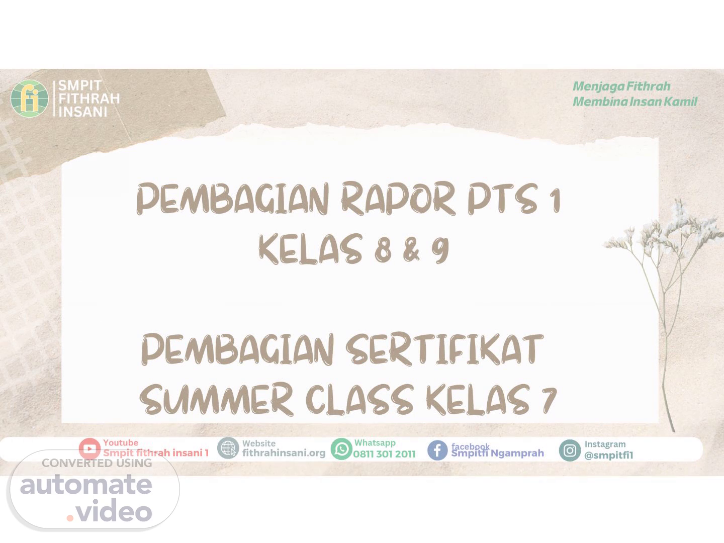 SMPI FITHRAH INSANI Menjaga Fithrah Membina Insan Kamil RAPOR PTS I KELAS d & 9 PEMbAGIAt•J CERTIFIKAT SUMMER CLASS KELAS 7 Youtube Website Smpit fithrah insani fithrahinsani.org @oW8h$ItS3aoPIP2011 0 Ngamprah Instagram @smpitfil.