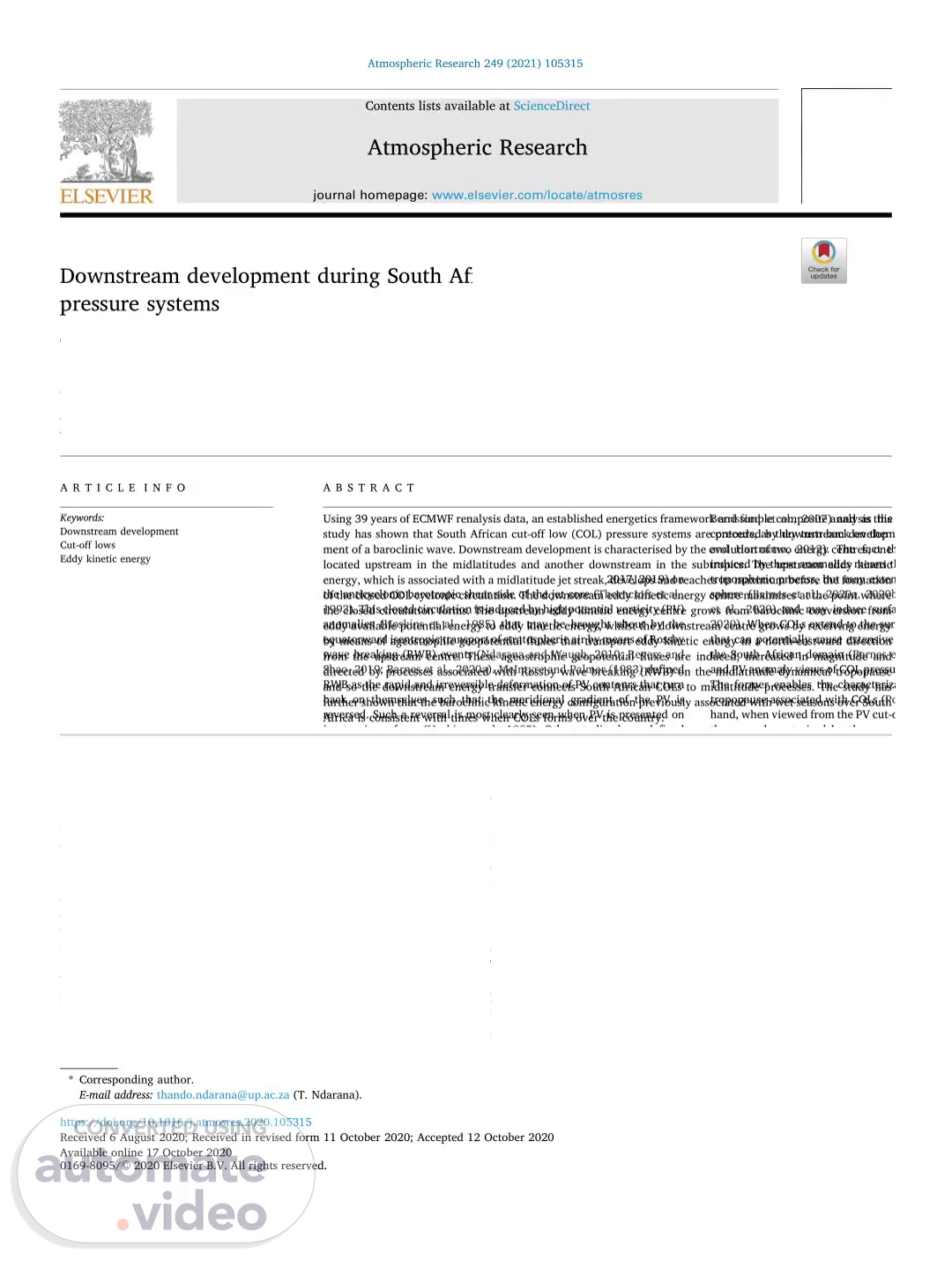. . Atmospheric Research 249 (2021) 105315. 15. Moelekwa, S., Engelbrecht, C.J., deW Rautenbach, C.J., 2014. Attributes of cut-off low induced rainfall over the Eastern Cape Province of South Africa. Theor. Appl. Climatol. 118 (1–2), 307–318..