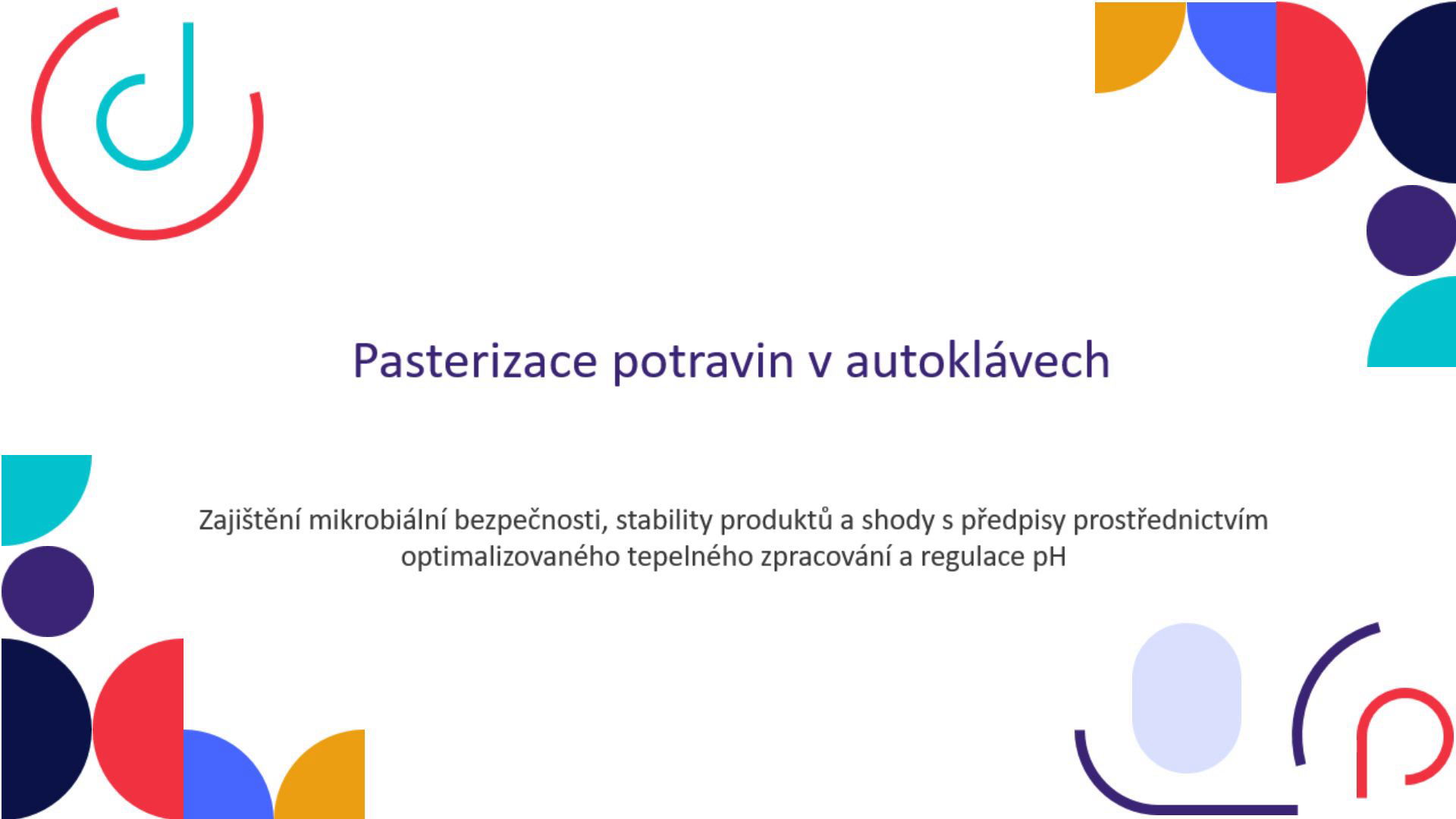 [Audio] V této prezentaci se zaměříme na hodnocení mikrobiologických rizik spojených s pasterizací v autoklávu. Nejprve identifikujeme cílové mikroorganismy, mezi které patří infekční patogeny, jako jsou Salmonella a Listeria, producenti toxinů, jako je Clostridium botulinum a Staphylococcus aureus, a spory kažení, jako jsou Bacillus coagulans a Clostridium pasteurianum. Dále provedeme posouzení rizik, abychom identifikovali nejhorší scénáře kontaminace. Tento krok je zásadní pro stanovení kritických limitů pro tepelné zpracování a úrovně pH, aby bylo zajištěno, že proces pasterizace účinně kontroluje mikrobiologická rizika. Klíčovým kontrolním bodem je udržování maximálního rovnovážného pH pod 4,6 během 24 hodin, což je nezbytné pro prevenci růstu Clostridium botulinum. Tento limit pH je kritickým faktorem bezpečnosti produktu. Pokud jde o tepelné zpracování, normy vyžadují dosažení snížení počtu infekčních patogenů alespoň o 6 logů. Toho lze dosáhnout například aplikací tepelného zpracování ekvivalentního 2 minutám při 70 °C. Splnění těchto norem je zásadní pro zajištění mikrobiologické bezpečnosti produktu. A konečně, návrh procesu integruje tato mikrobiologická rizika kombinací tepelného zpracování a opatření pro regulaci pH. Tento integrovaný přístup zaručuje bezpečnost produktu po celou dobu jeho trvanlivosti tím, že účinně řeší potenciální rizika kontaminace..