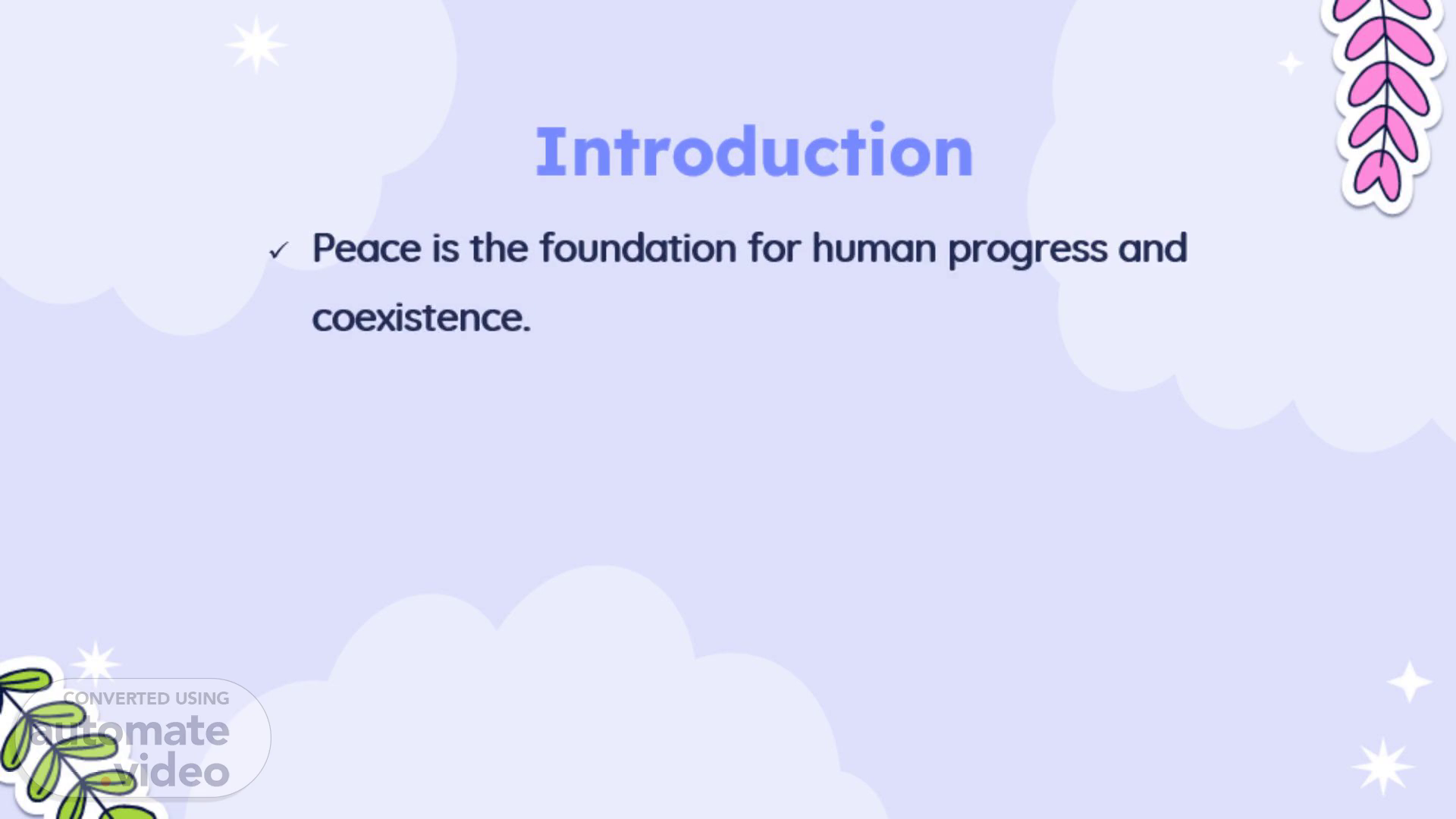 Introduction. Peace is the foundation for human progress and coexistence. It involves harmony, security, and mutual respect among people and nations..
