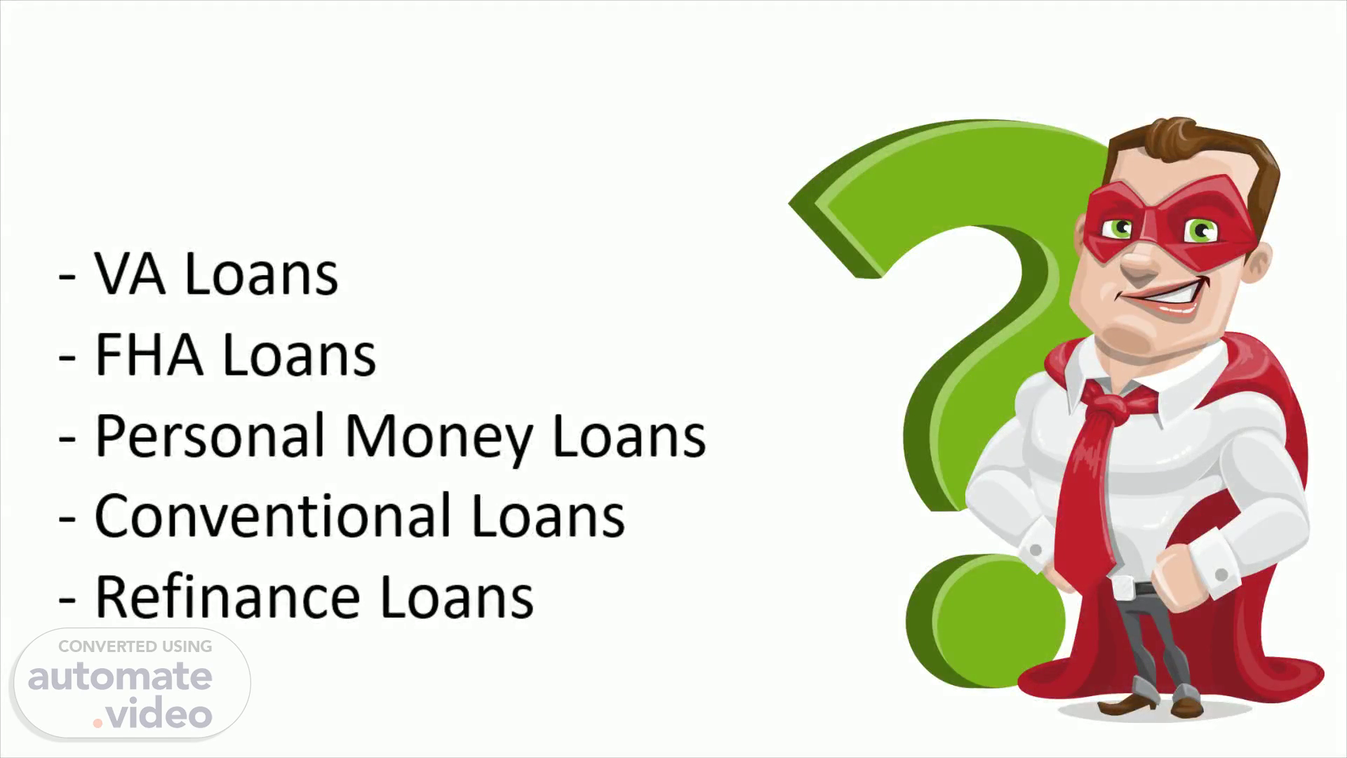 [Audio] We offer VA , F.H.A. Personal Money , Conventional And Refinance Loans.