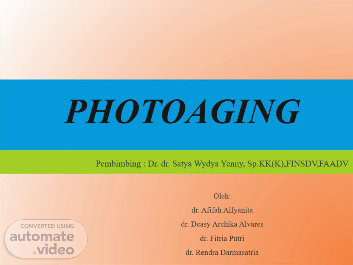 Photoaging. Pembimbing : Dr. dr. Satya Wydya Yenny , Sp.KK (K),FINSDV,FAADV Oleh: dr. Afifah Alfyanita dr. Deasy Archika Alvares dr. Fitria Putri dr. Rendra Darmasatria.