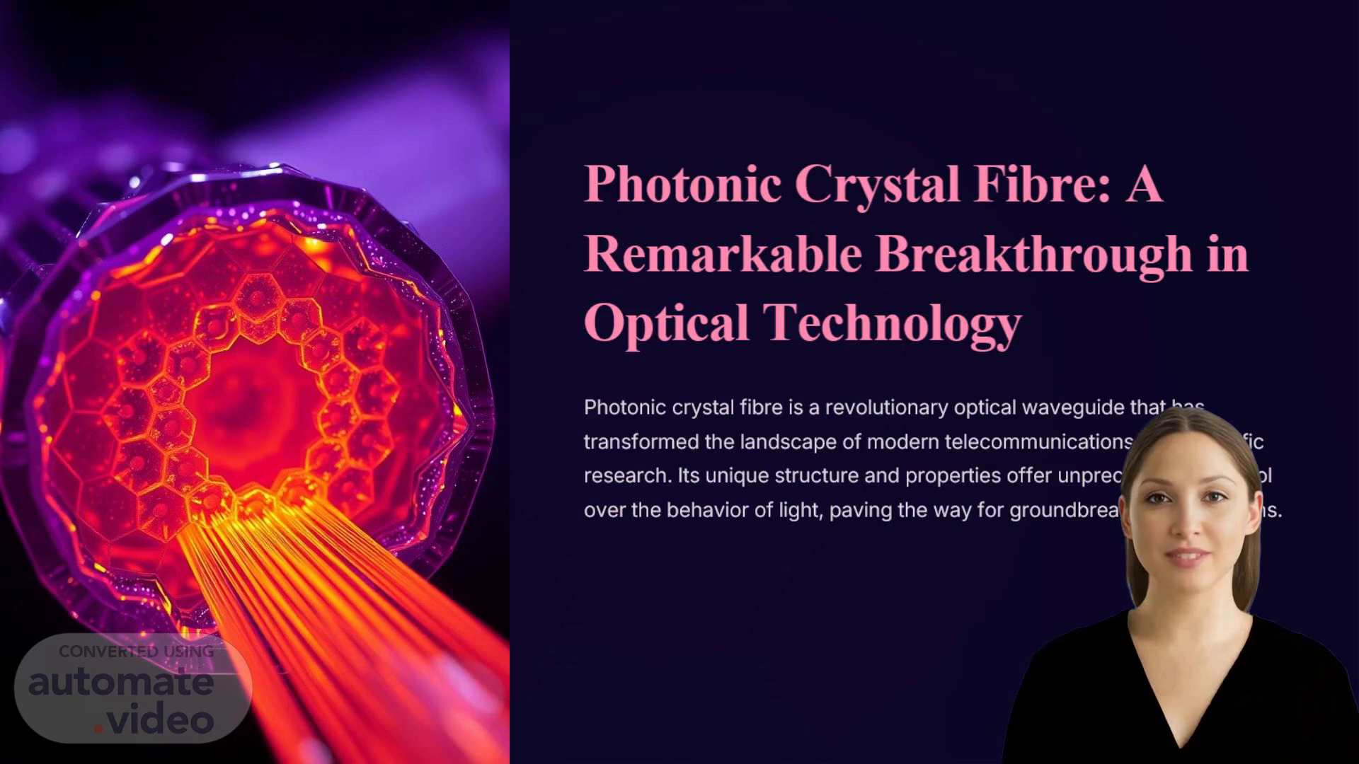 [Virtual Presenter] Photonic Crystal Fibre: A Remarkable Breakthrough in Optical Technology Photonic crystal fibre is a revolutionary optical waveguide that has transformed the landscape of modern telecommunications and scientific research. Its unique structure and properties offer unprecedented control over the behavior of light, paving the way for groundbreaking applications..