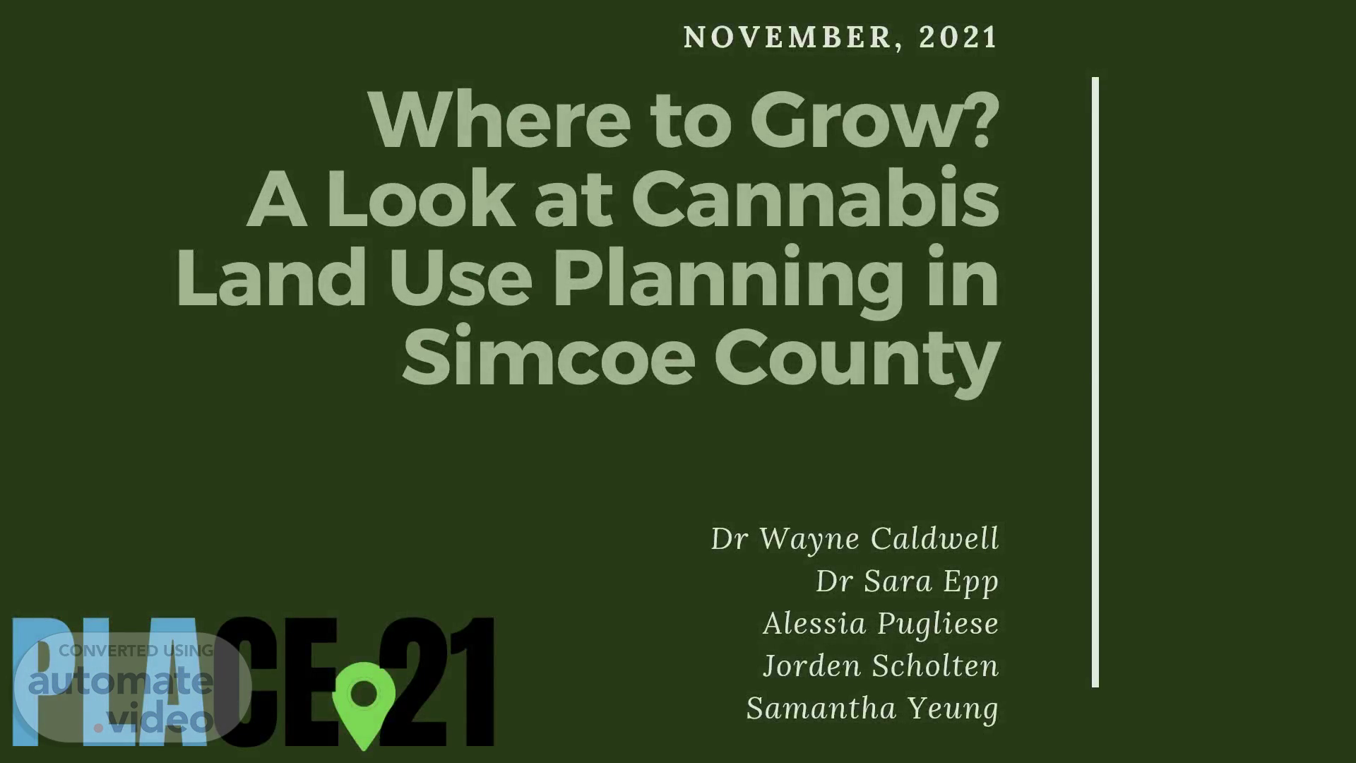 NOVEMBER, 2021 Where to Grow? A Look at Cannabis Land Use Planning in Simcoe County Dr Wayne Caldwell Dr Sara Epp Alessia Pugliese Jorden Scholten Samantha Yeung.
