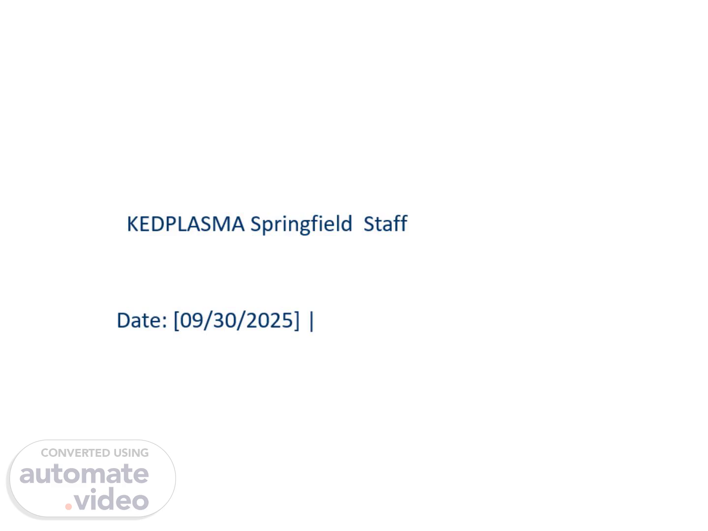 KEDPLASMA Springfield Staff & Safety Meeting. Date: [09/30/2025] | Facilitator: [Whitney Marsh].