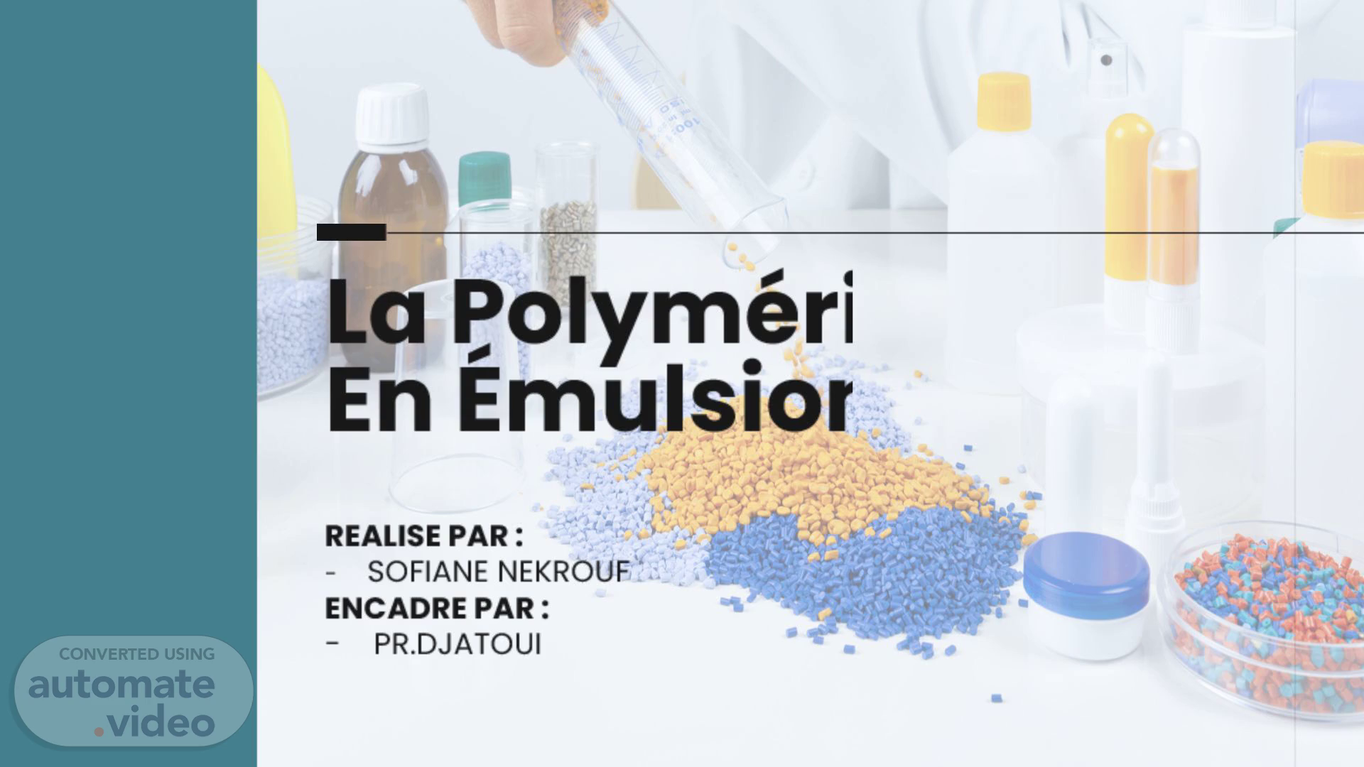 La Polymérisation En Émulsion. REALISE PAR : SOFIANE NEKROUF ENCADRE PAR : - PR.DJATOUI.