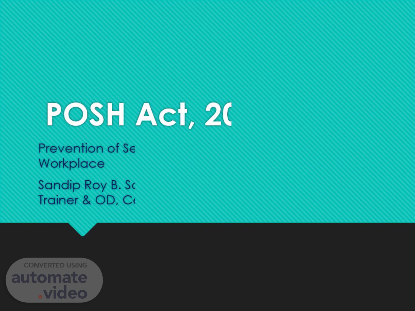 POSH Act, 2013. Prevention of Sexual Harassment of Women at the Workplace Sandip Roy B. Sc, PGD IR & PM, MBA – HR, BBS Trainer & OD, Certified POSH trainer, M- 7605895756.