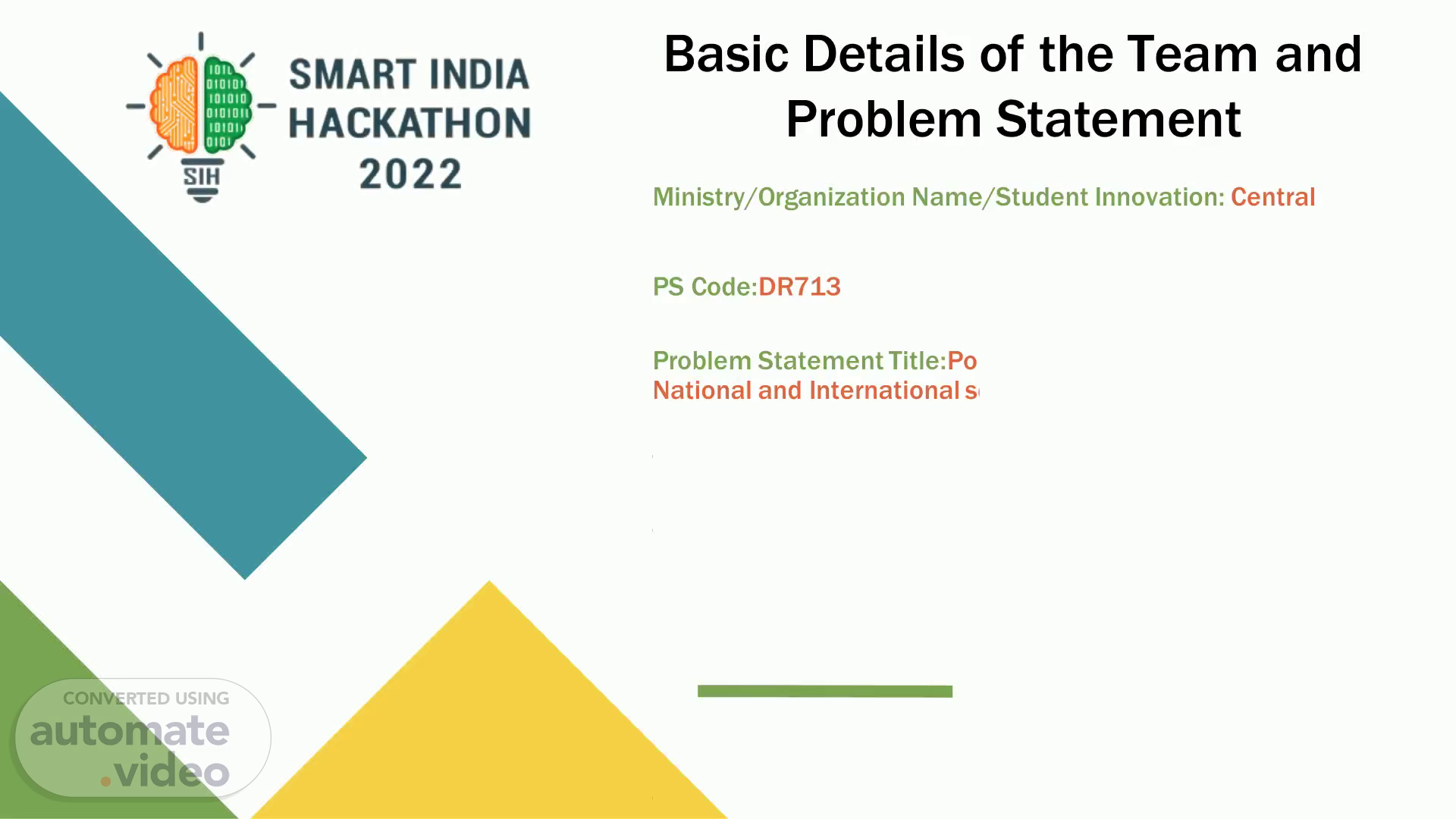 . . Basic Details of the Team and. Problem Statement.