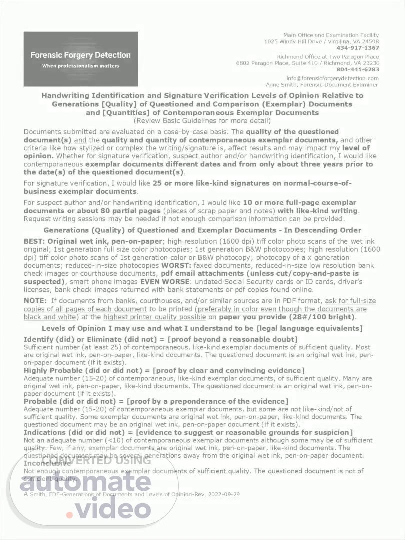 [Audio] Handwriting identification and signature verification levels of opinion Probable Proof by a preponderance of the evidence.