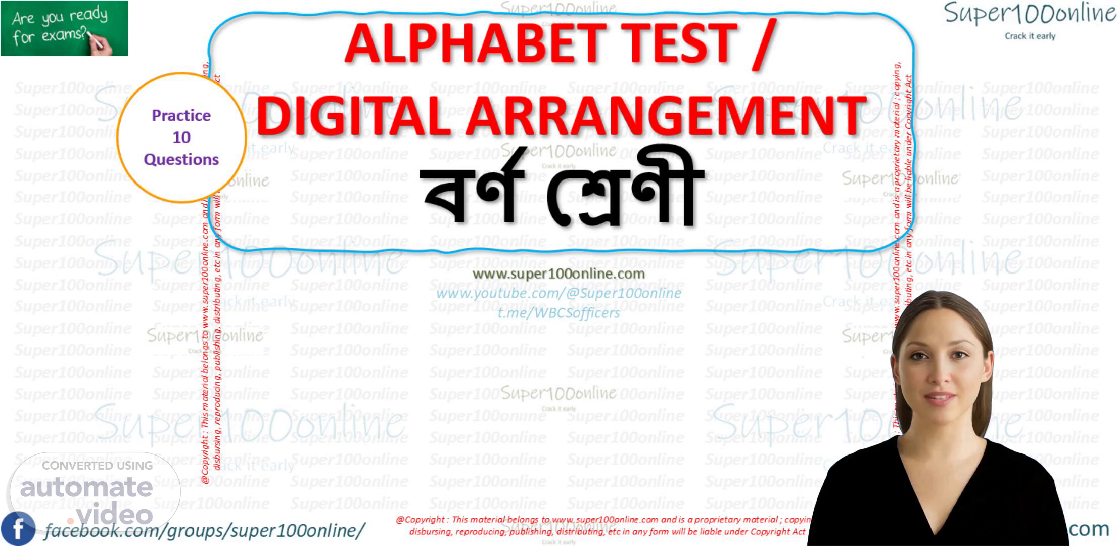 [Virtual Presenter] We are glad to have you here for the ALPHABET TEST and DIGITAL ARRANGEMENT presentation. Today, our focus will be on the highly anticipated questions for WBCS Prelims. This practice set features 10 questions that will aid in your exam preparation and boost your confidence. Let's dive in and enhance your alphabet and digital arrangement skills. Without further delay, let's move on to the first question..