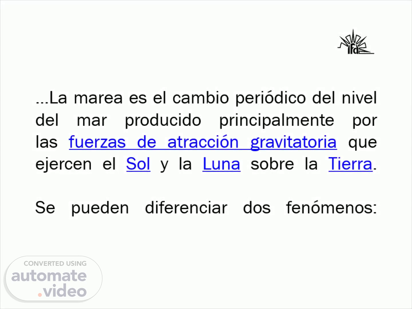 …La marea es el cambio periódico del nivel del mar producido principalmente por las fuerzas de atracción gravitatoria que ejercen el Sol y la Luna sobre la Tierra. Se pueden diferenciar dos fenómenos: