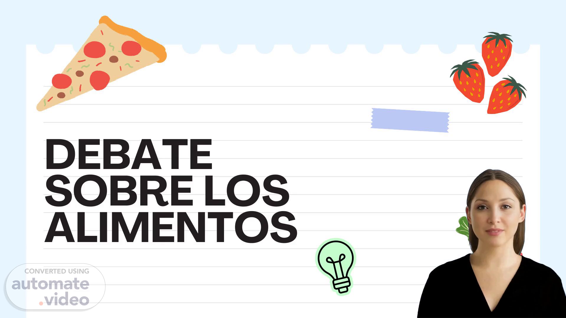 [Virtual Presenter] "¡A todos les doy la bienvenida! Como maestro de esta escuela, me emociona presentarles este debate sobre un tema tan relevante como lo son los alimentos. A lo largo de esta presentación de 12 diapositivas, exploraremos juntos diversas perspectivas y opiniones acerca de cómo los alimentos impactan nuestras vidas. Espero que sea una experiencia enriquecedora e informativa para todos. ¡Comencemos nuestro debate sobre los alimentos!.
