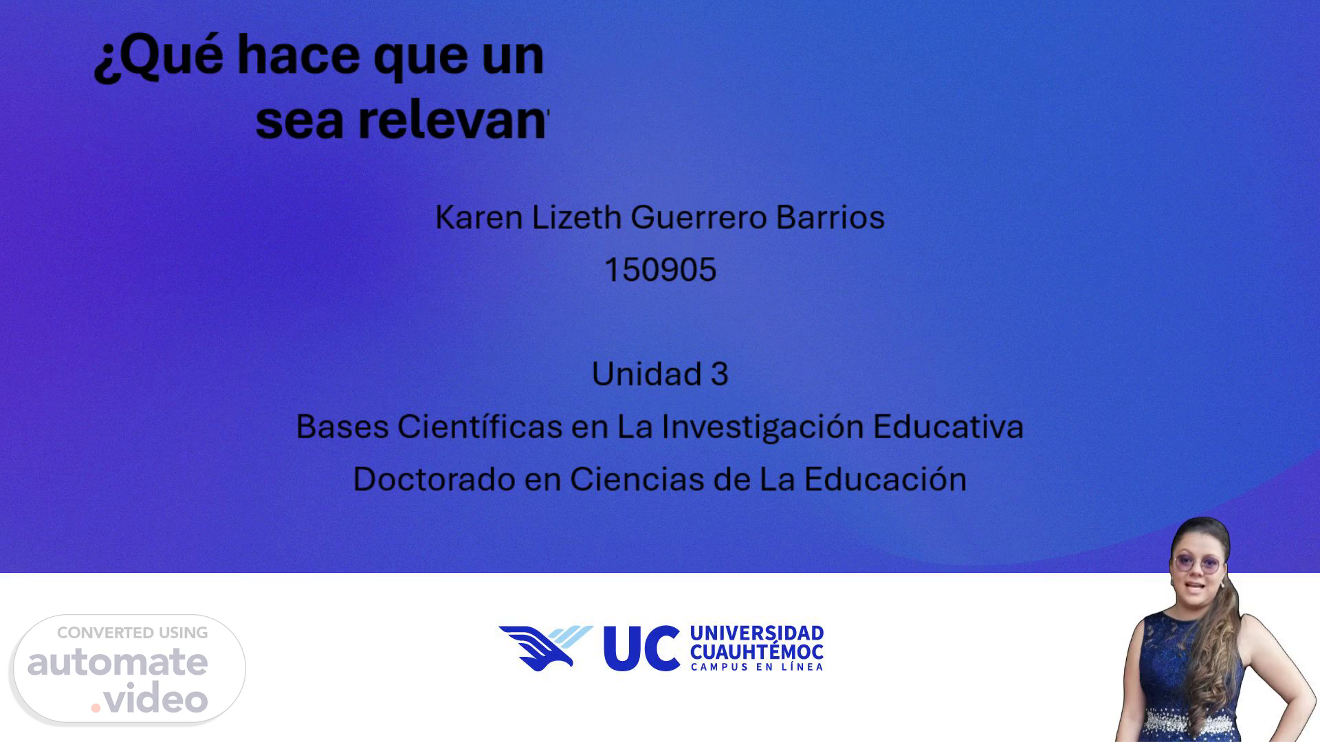 Cordial Saludo, mi nombre es Karen Guerrero, esta es mi presentación sobre ¿Qué hace que un problema de investigación sea relevante y de dónde surge?..