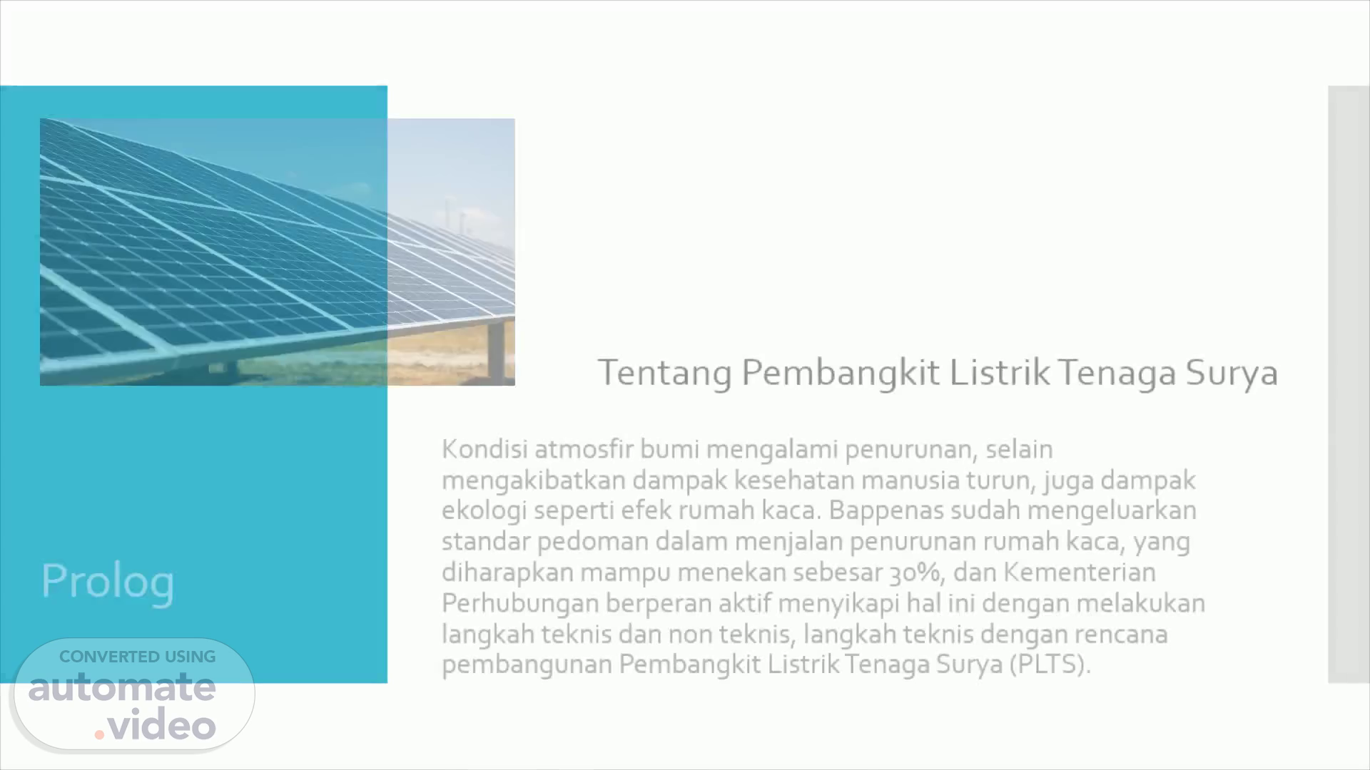 [Audio] Kondisi atmosfir bumi mengalami penurunan, selain mengakibatkan dampak kesehatan manusia turun, juga dampak ekologi seperti efek rumah kaca. Bappenas sudah mengeluarkan standar pedoman dalam menjalan penurunan rumah kaca, yang diharapkan mampu menekan sebesar 30%, dan Kementerian Perhubungan berperan aktif menyikapi hal ini dengan melakukan langkah teknis dan non teknis, langkah teknis dengan rencana pembangunan Pembangkit Listrik Tenaga Surya (PLTS)..