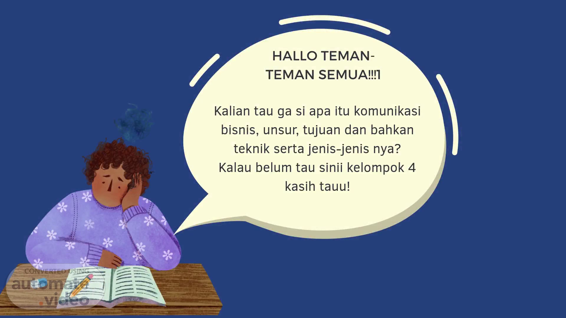 HALLO TEMAN-TEMAN SEMUA!!!1. Kalian tau ga si apa itu komunikasi bisnis, unsur, tujuan dan bahkan teknik serta jenis-jenis nya? Kalau belum tau sinii kelompok 4 kasih tauu!.