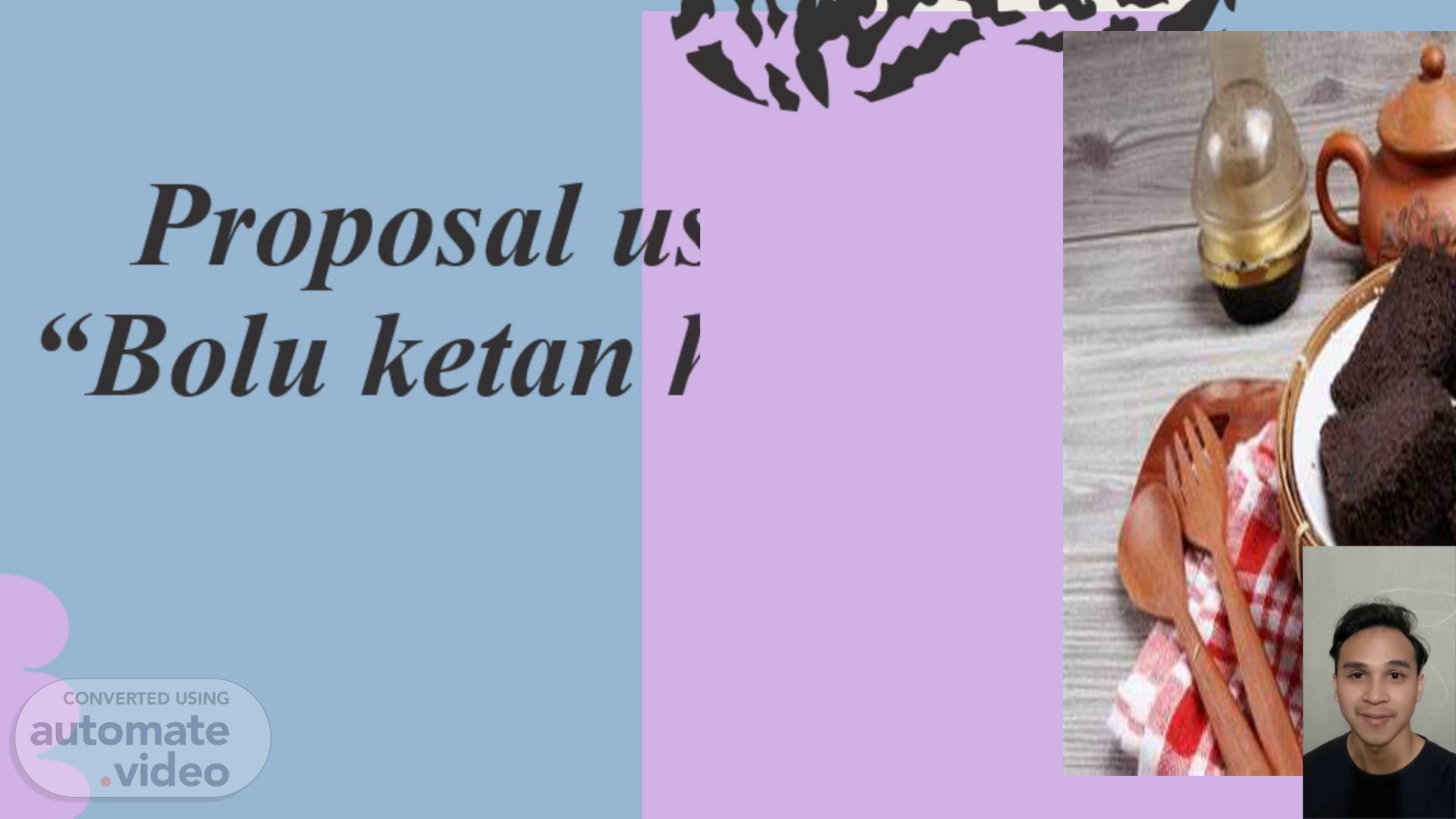 [Audio] Saya melihat bahwa di era sekarang ini banyak masyarakat yang menyukai cemilan bolu. Namun, di daerah saya, jarang ada orang yang memproduksinya, sehingga saya memiliki ide untuk membuat usaha produksi bolu ketan hitam..